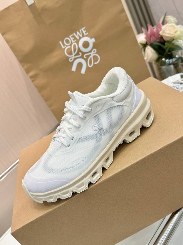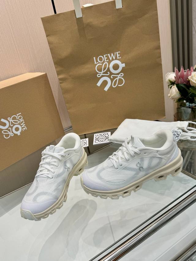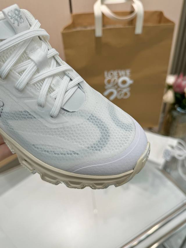 鞋面由再生聚酯纤维和网眼布制成,采用独家鞋底,鞋侧印有Loewe罗意威经典Logo,饰有全覆盖贴缝细节。此次合作,将On昂跑专业技术和Loe