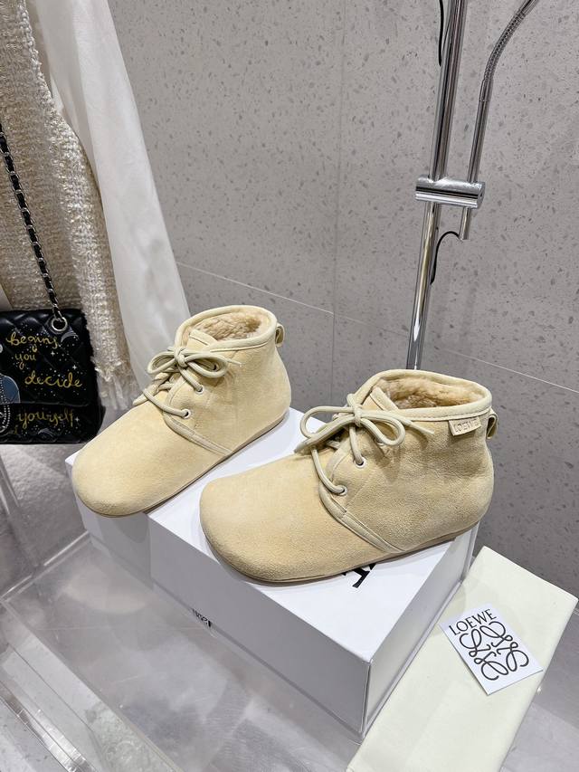 罗意威loewe明星同款最新款羊毛一体雪地靴!质感超级奈斯,上脚一个高端产品,选用原版一比一羊毛一体,上脚非常舒适 大头的设计