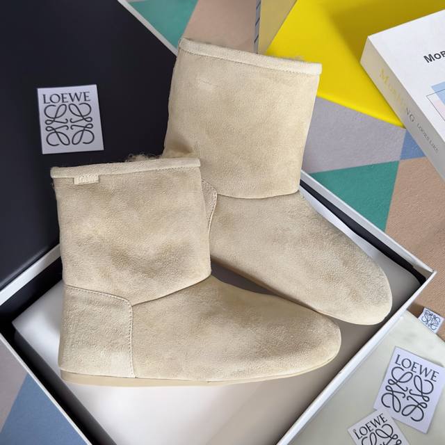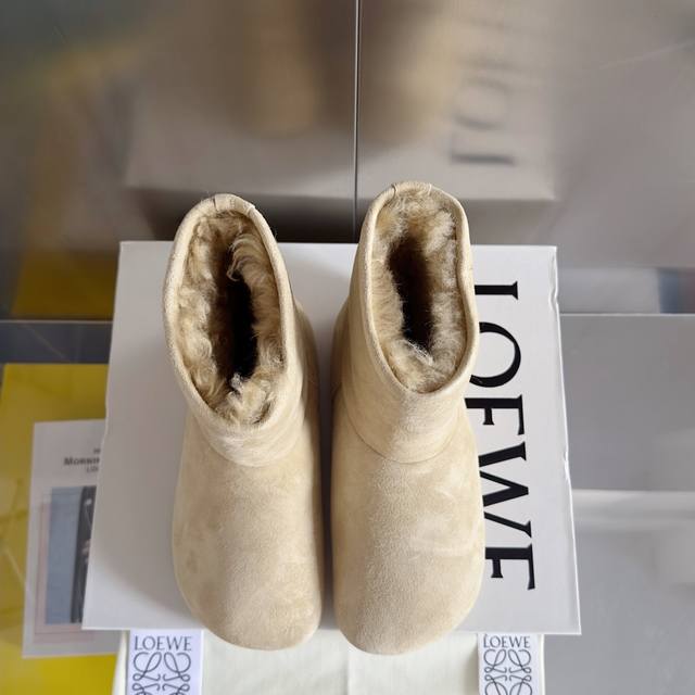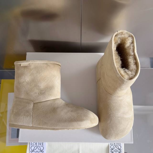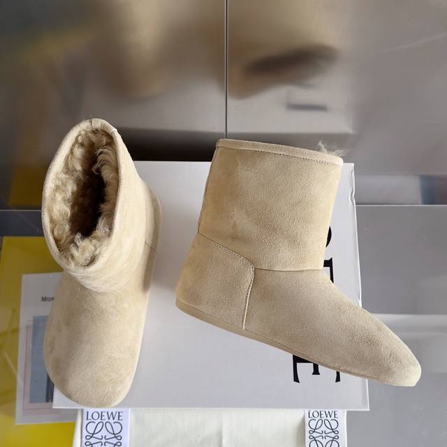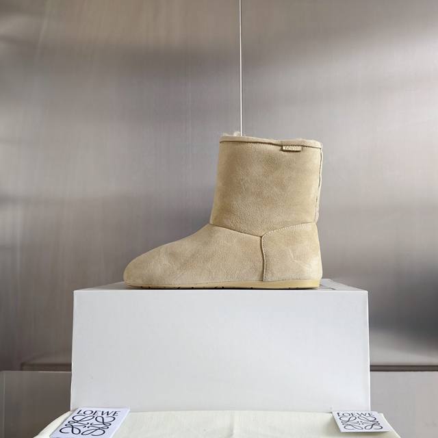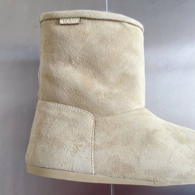 原版购入开发 做货 这款lago雪地靴 绒面革靴,饰有剪羊毛衬里,搭配厚实圆形不对称鞋头和超轻盈橡胶鞋底anagram 圧紋 Tpu 外底 侧面饰有 Loewe 标签