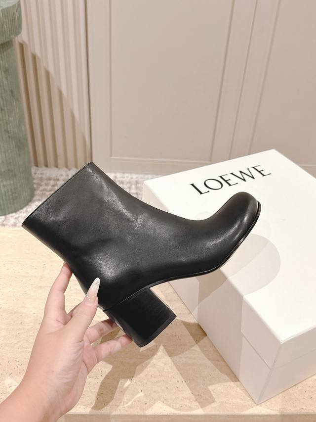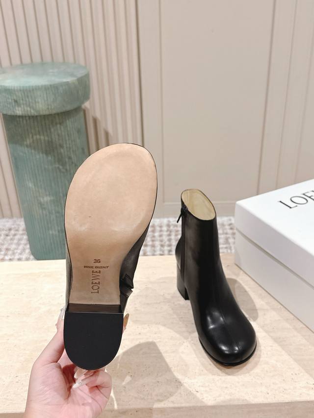 顶级版本: :Loewe Fw25 New Arrival~ 罗意威25款圆头短靴!粗跟配圆头 保证了穿着的舒适度,还书写了读书罗意威气质的设计感! 小牛皮材质