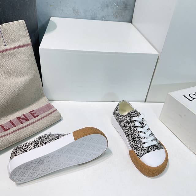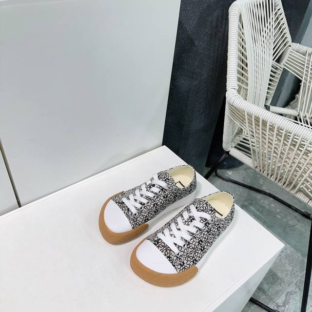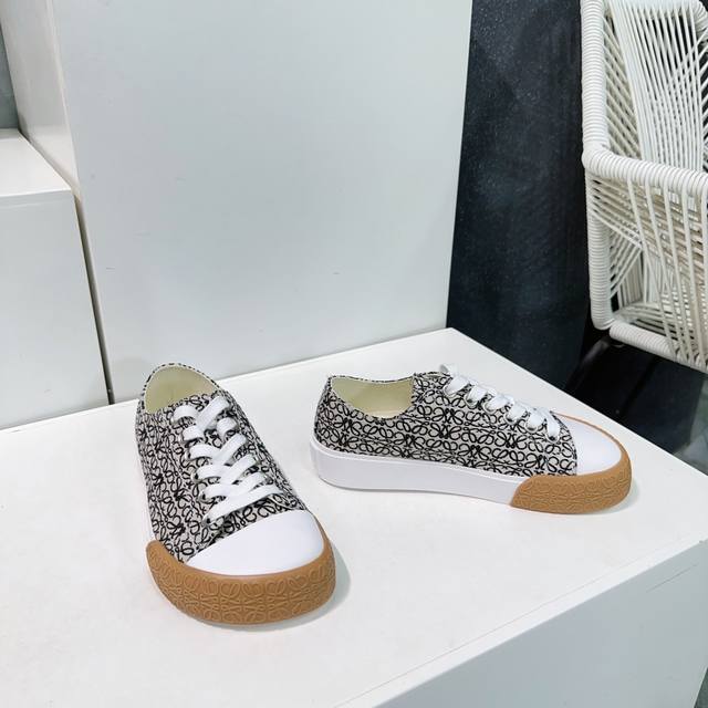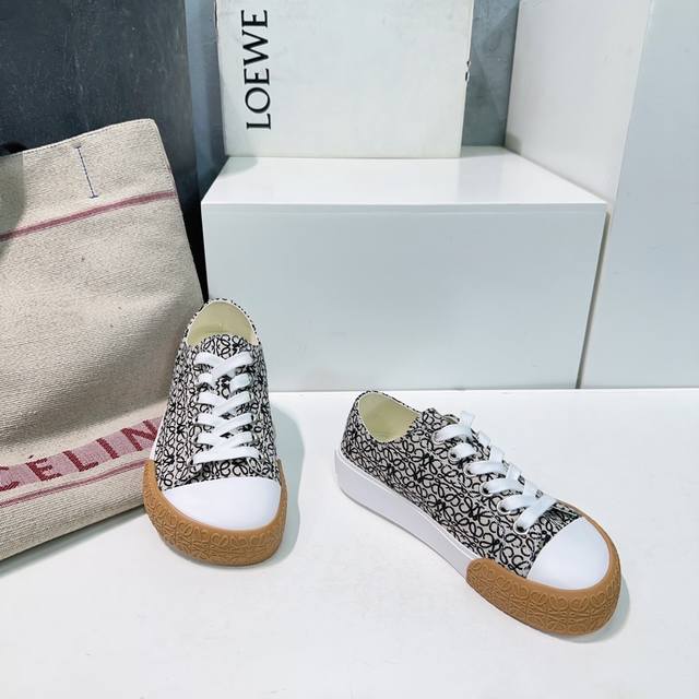 高品质出厂 !顶级品质loewe 罗意威 24Ss秋冬新款 Terra Vulca系带帆布运动鞋大头鞋硫化鞋!搭配硫化橡胶鞋底和不对称的厚实鞋头 对于宽脚丫的mm们极度友好的一款鞋!这舒适度真的不要太好 有种潮酷潮酷的感觉,单宁布的配色更显青春活力 采用标志性厚实结构鞋头造型 脚大的我都觉得io感超舒服!搭任何衣服都可以!