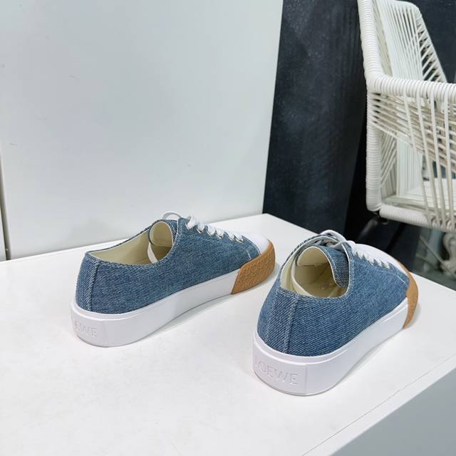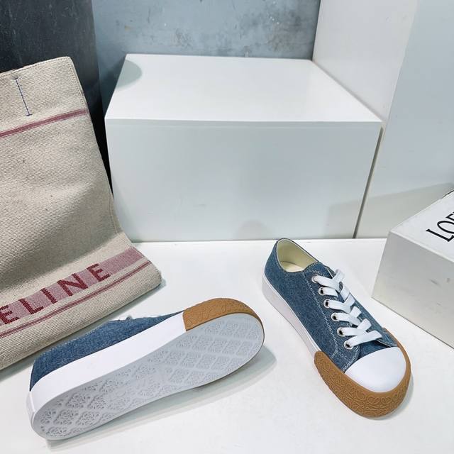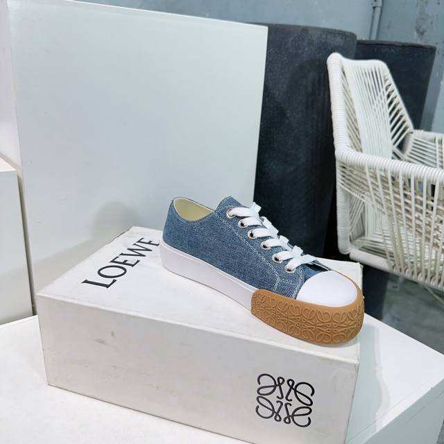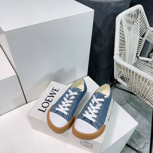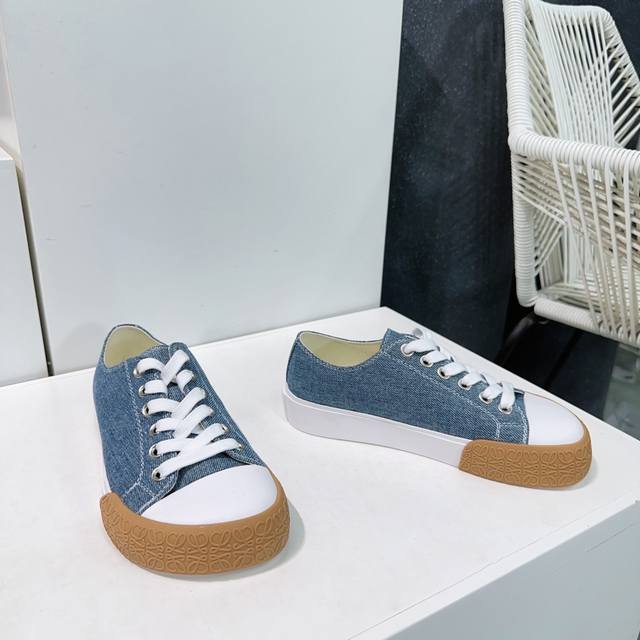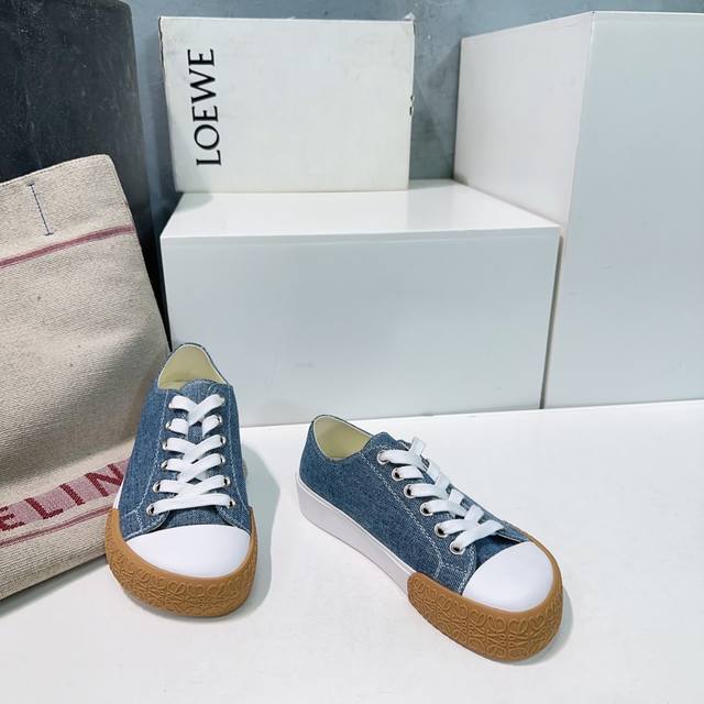 高品质出厂 !顶级品质loewe 罗意威 24Ss秋冬新款 Terra Vulca系带帆布运动鞋大头鞋硫化鞋!搭配硫化橡胶鞋底和不对称的厚实鞋头 对于宽脚丫的mm们极度友好的一款鞋!这舒适度真的不要太好 有种潮酷潮酷的感觉,单宁布的配色更显青春活力 采用标志性厚实结构鞋头造型 脚大的我都觉得io感超舒服!搭任何衣服都可以!