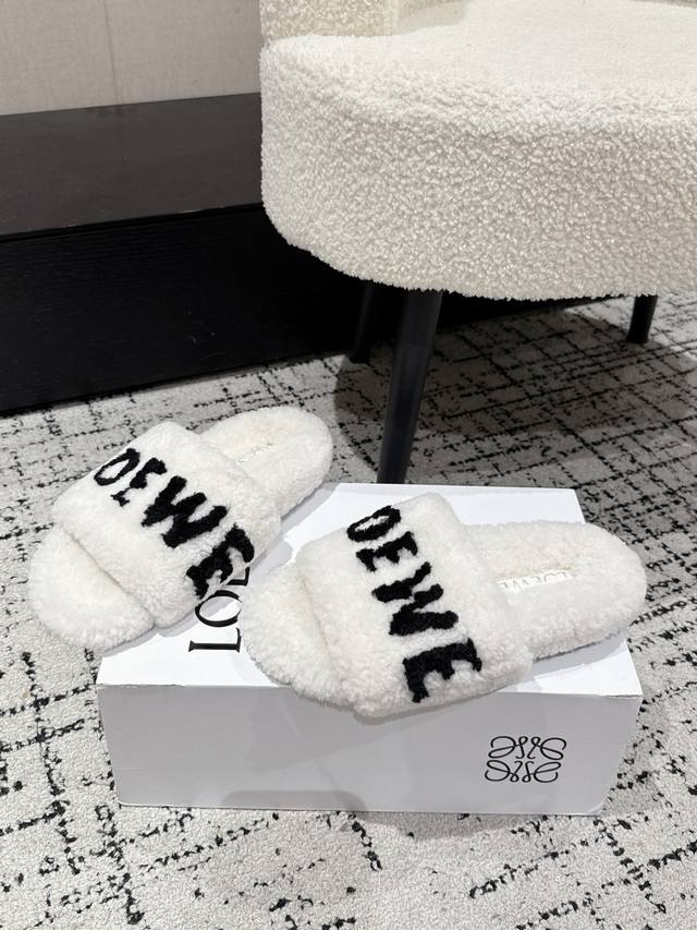 Loewe罗意威 25 最新 秋冬字母毛毛拖鞋