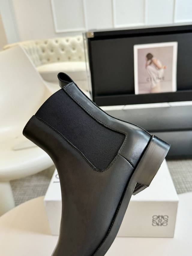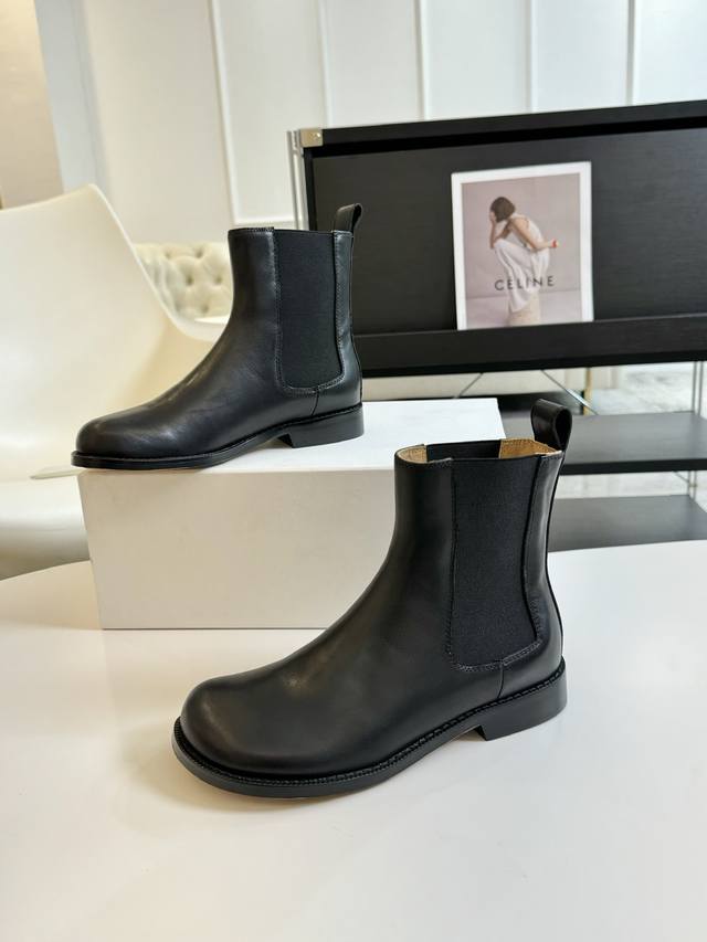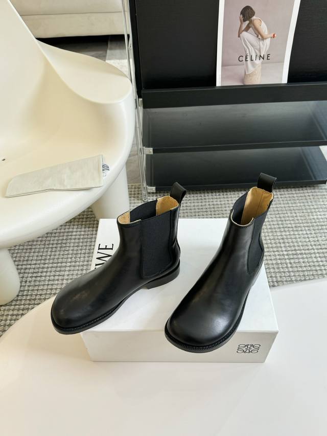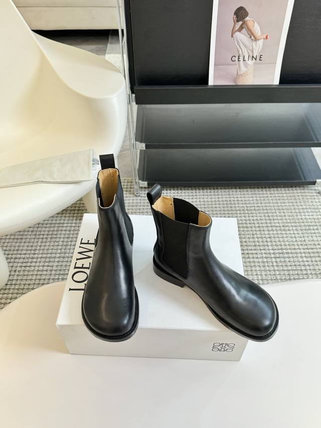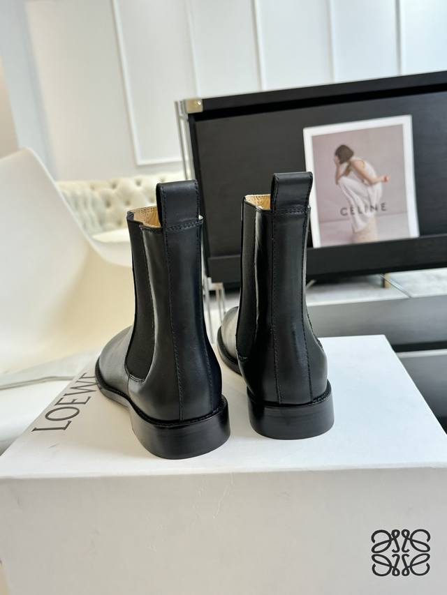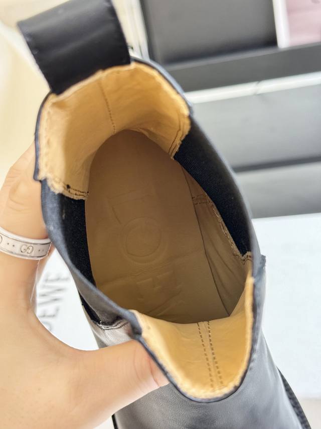 Loewe 罗意威 24Ss 秋冬新款 方跟厚底女靴套脚一脚蹬弹力靴牛皮平底时装靴短靴
