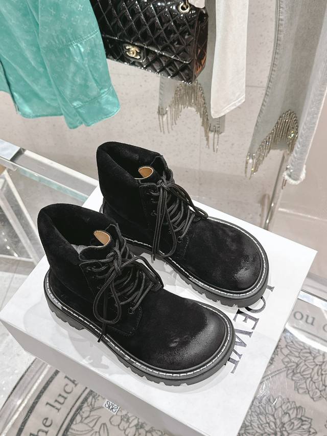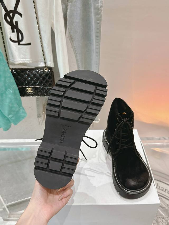 代购级 Loewe 罗意威 24Ss 秋冬新款 娃娃头 鞋带马丁靴 简约大气时髦 耐看不过时 是时尚圈永不退潮的经典所在 复古的英伦风格...