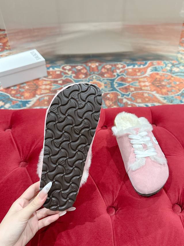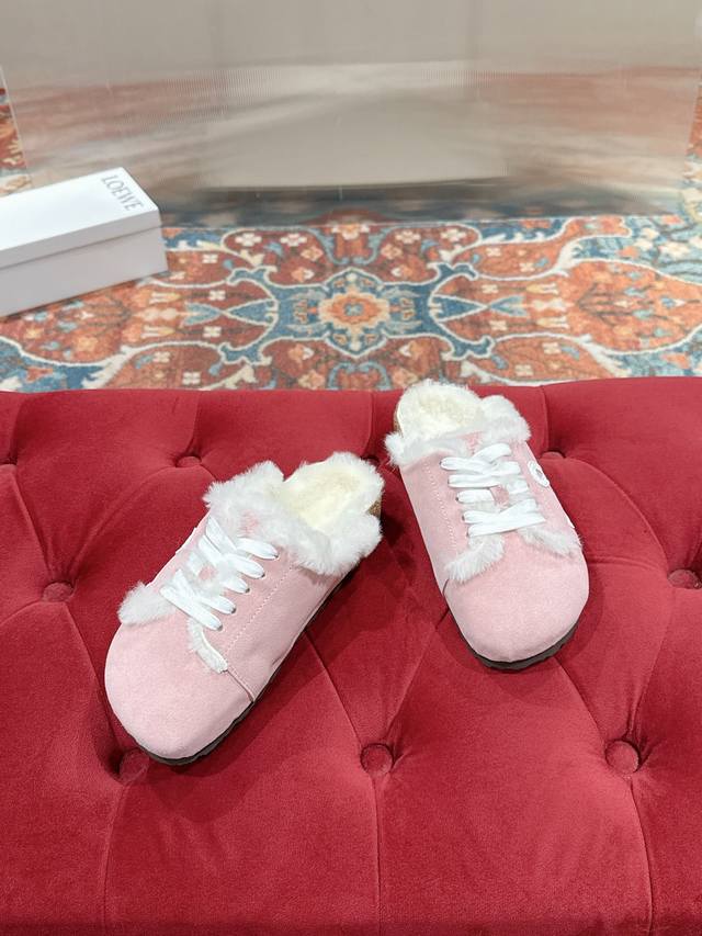 Loewe *罗意威情侣款毛毛拖鞋 人体工学设计分散脚部压力,保护脚踝,软木乳胶鞋床具有一定的收缩性,长时间穿着后能贴合脚型,鞋底回弹性和抗张性力高,具有良好的防震、缓冲性,提供额外的舒适感和全天支撑Size:35-40 女40.定制不退换