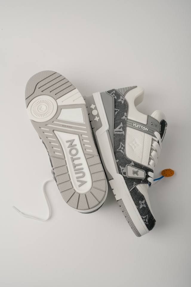 Louisvuittontrainer皮革圆头系带字母签名低帮板鞋鸳鸯男女同款请注意区分市面通货材料