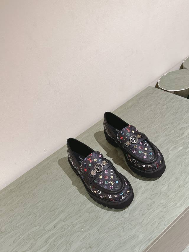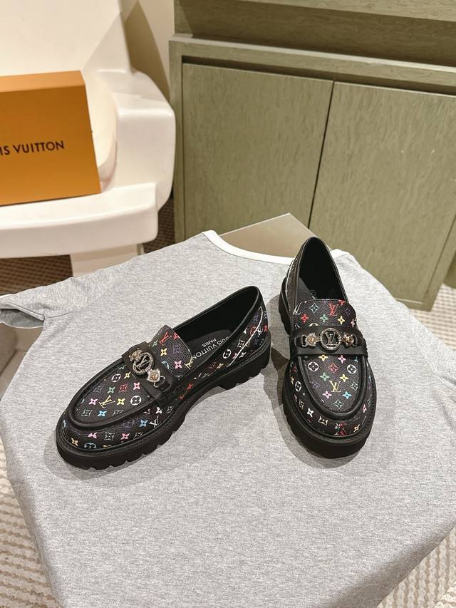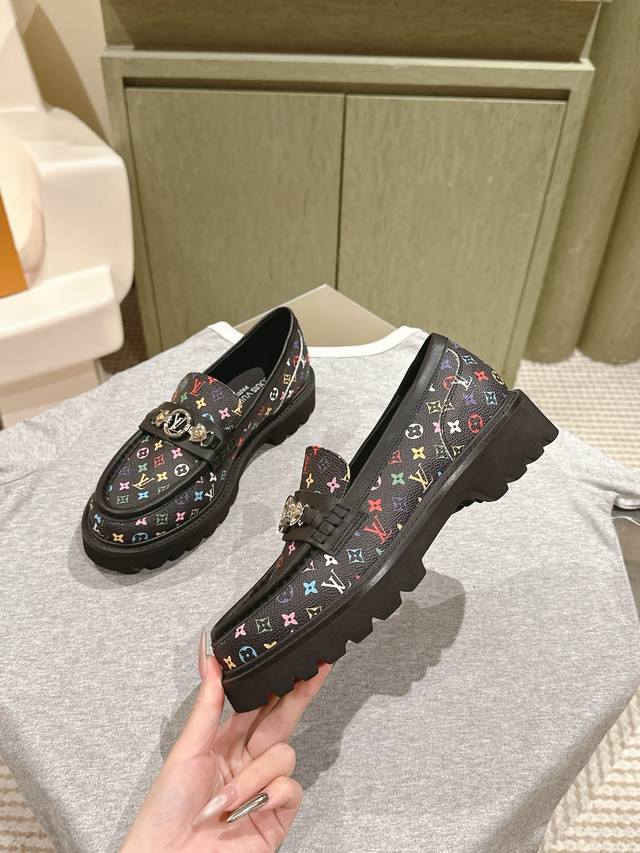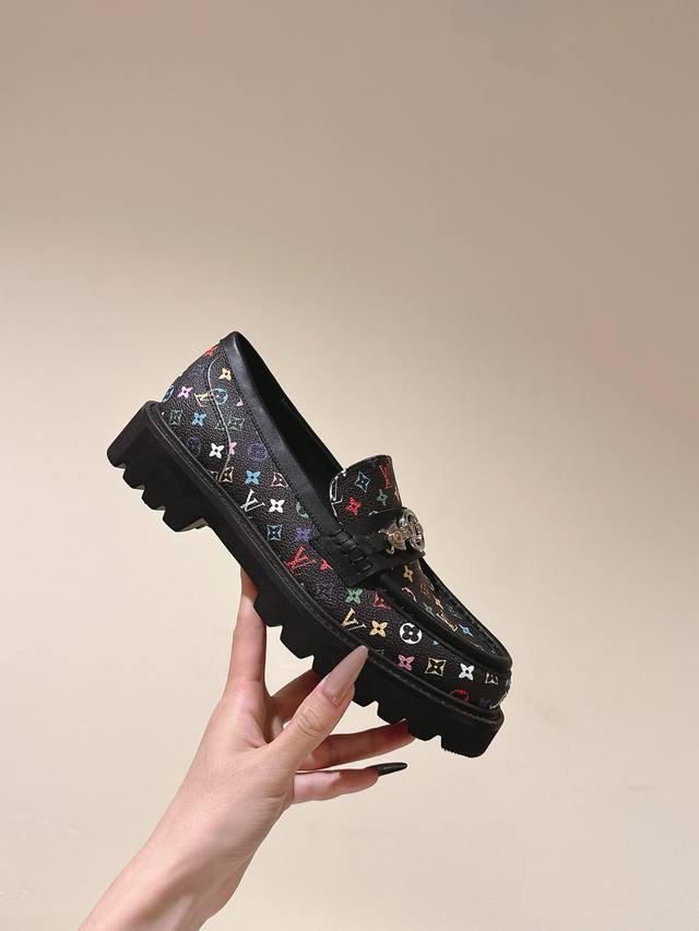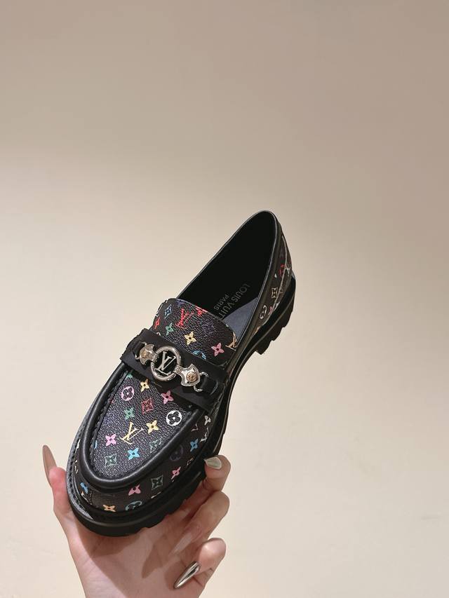 Lv 路易威登专柜最新老花牛皮厚底乐福鞋系列!代购级上新