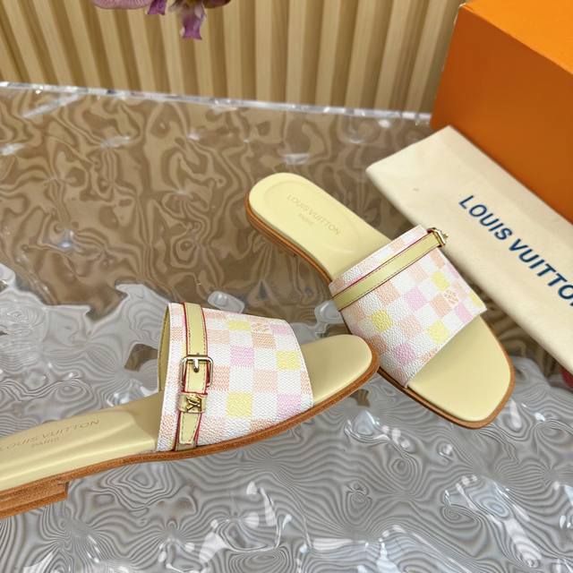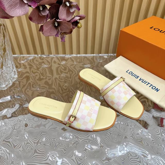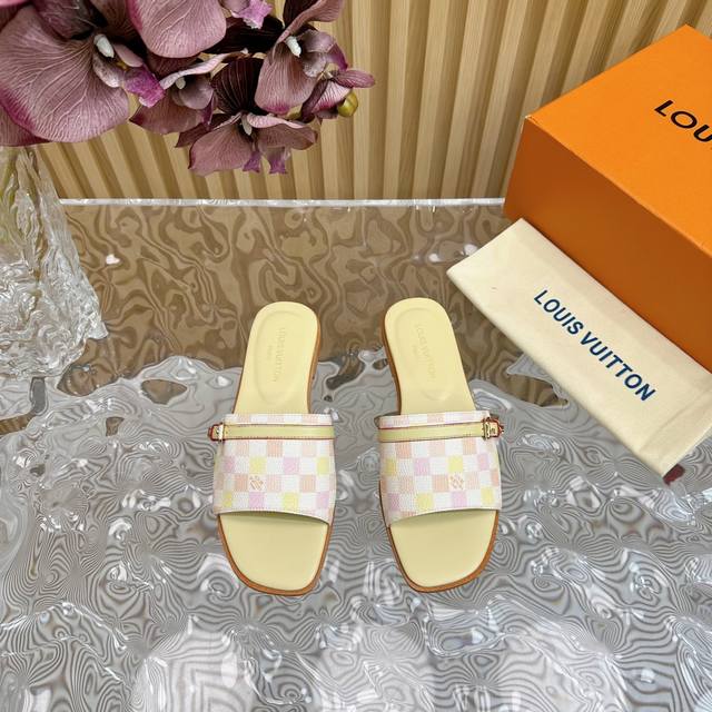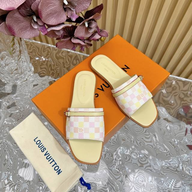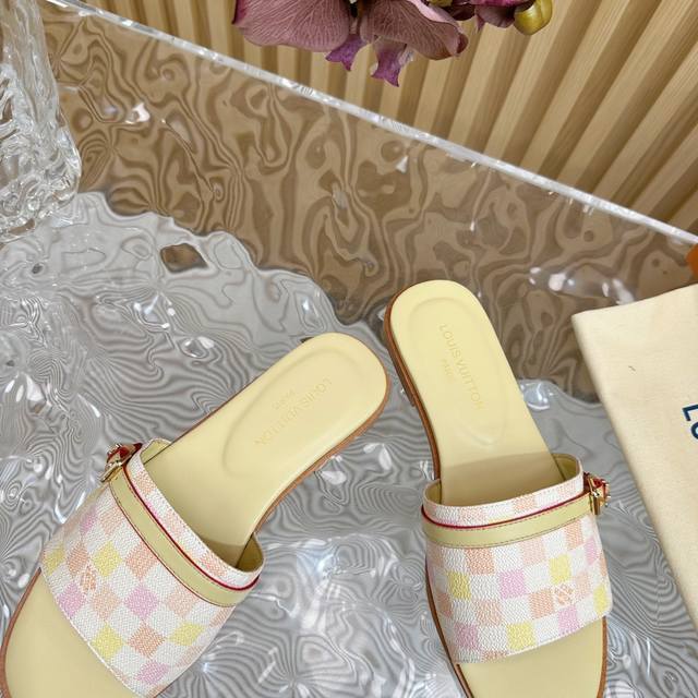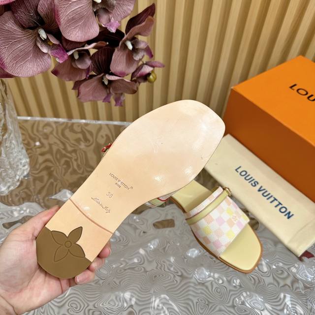 本款 Lv Isola 平底凉拖采用柔软牛皮革,令宽幅鞋面呈现镂空 Lv Circle 标识,追寻跨越时间的经典格调 多层皮革构筑耐磨一体式外底,衬垫内底令舒适感再度升级