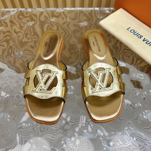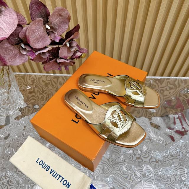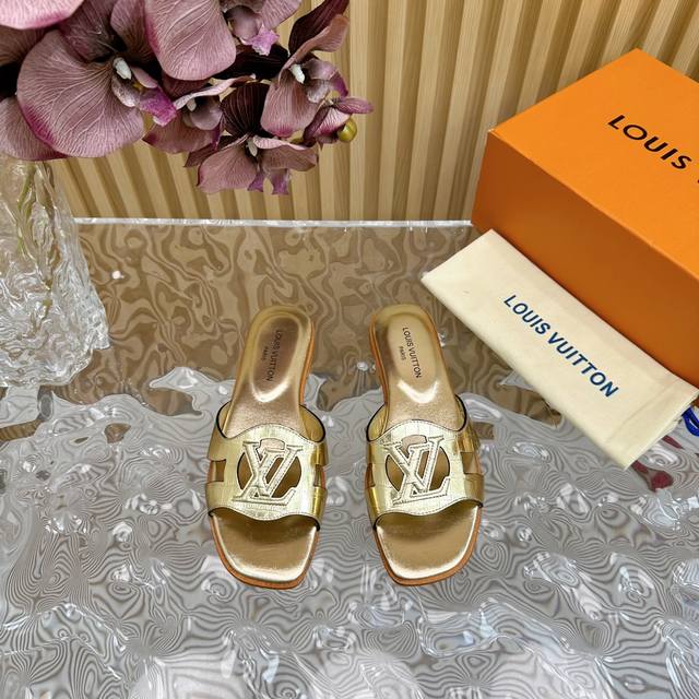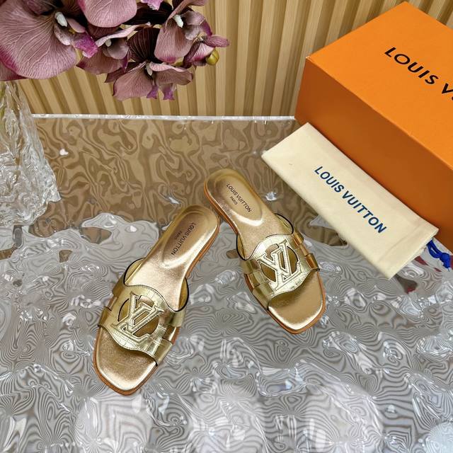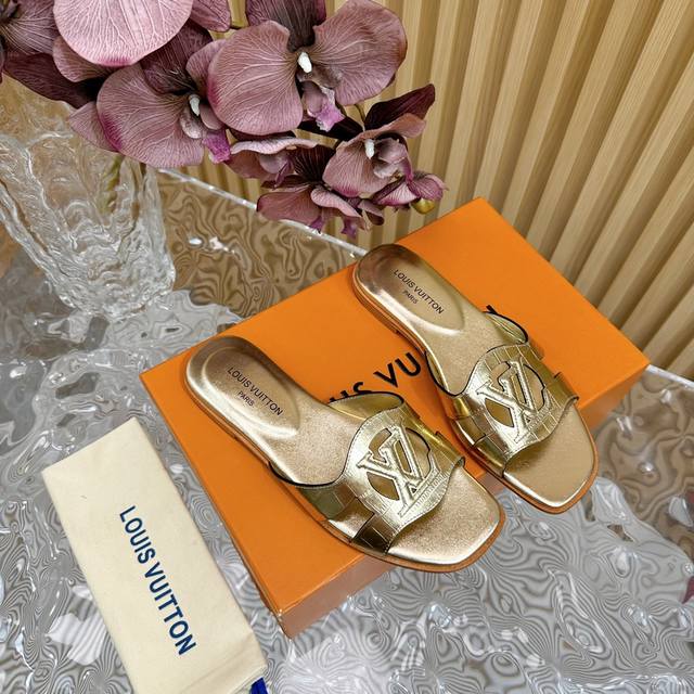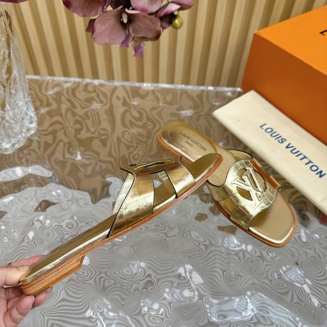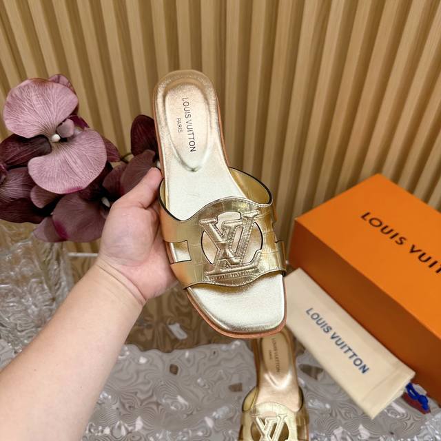本款 Lv Isola 平底凉拖采用柔软牛皮革,令宽幅鞋面呈现镂空 Lv Circle 标识,追寻跨越时间的经典格调 多层皮革构筑耐磨一体式外底,衬垫内底令舒适感再度升级