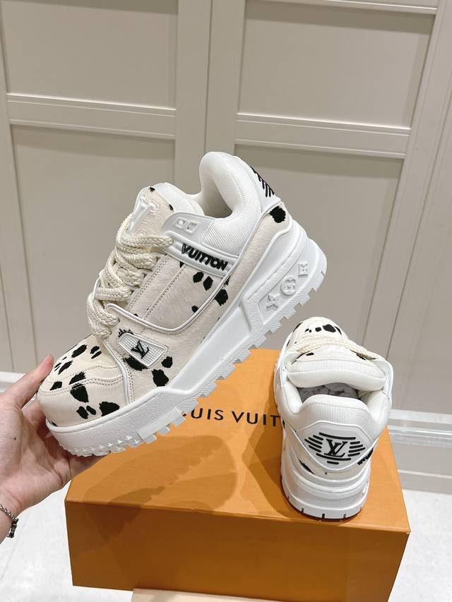 代购级别 限定斑点狗最新情侣系列 新色 Louis Vuitton 路易威登 Trainer Sneaker 时尚百搭低帮休闲板鞋 男女同款 顶级版本 胖嘟嘟