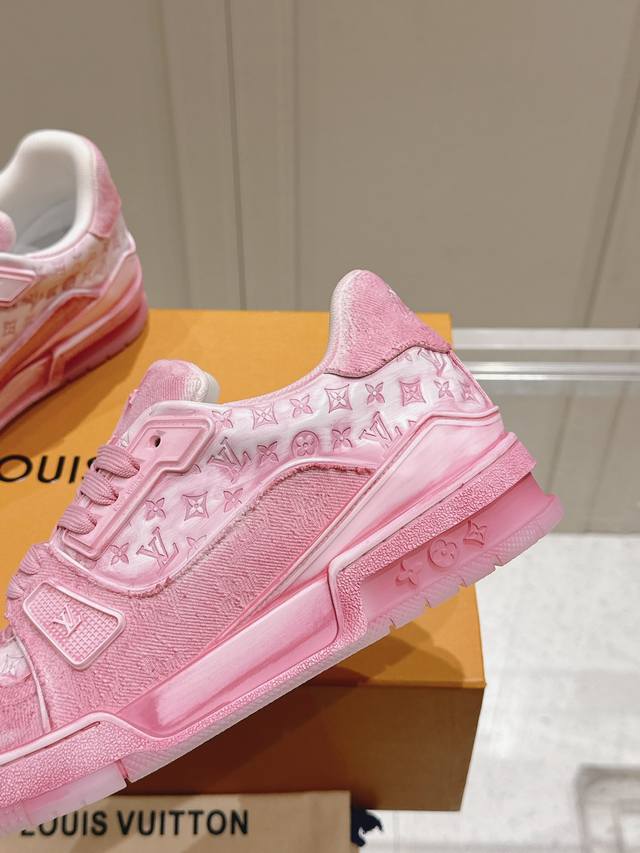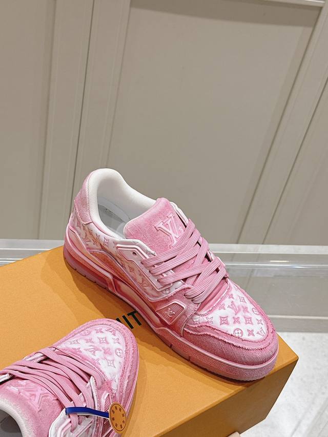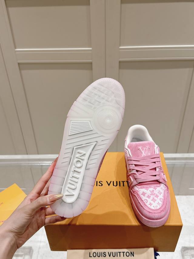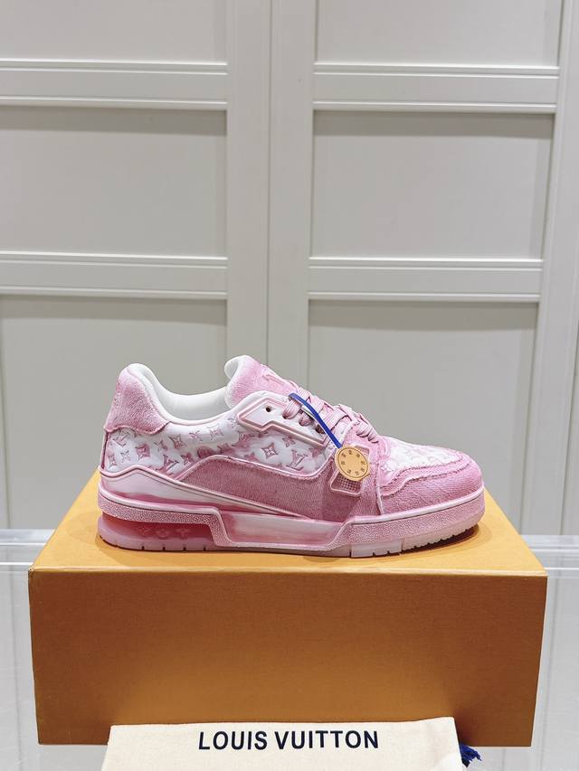 代购级 Lv Tarine 新色布拼皮 驴牌 情侣款 休闲 运动鞋 滑板鞋 面料: 原版定制头层牛皮 内里: 原版定制透气网里 大底: 原版开模双色tpu组合大