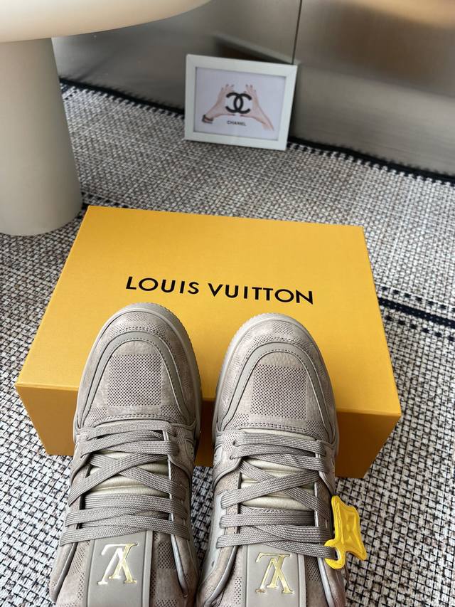 全新版面 Lv Tarine路易威登L家运动鞋 滑板鞋 情侣款 原版购入开发 做货 本款Lv Trainer 运动鞋选用牛皮革塑造繁复鞋面,需要数小时的匠心缝制