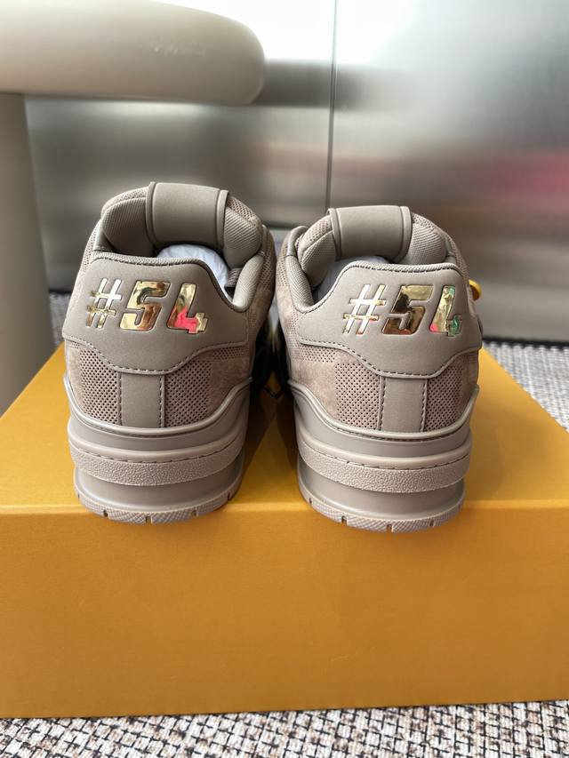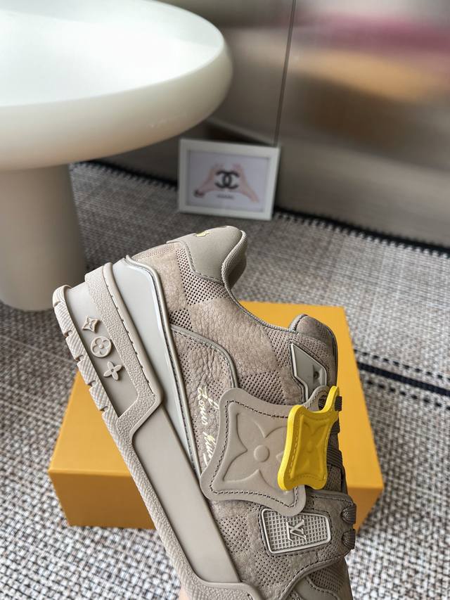 原版购入开发 做货 本款Lv Trainer 运动鞋选用牛皮革塑造繁复鞋面,需要数小时的匠心缝制方可完成。经典构型出自 Virgil Abloh 之手,展现复古篮球鞋的灵感启发