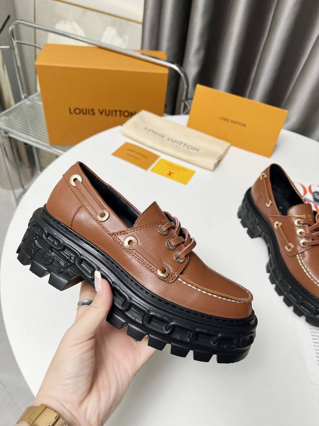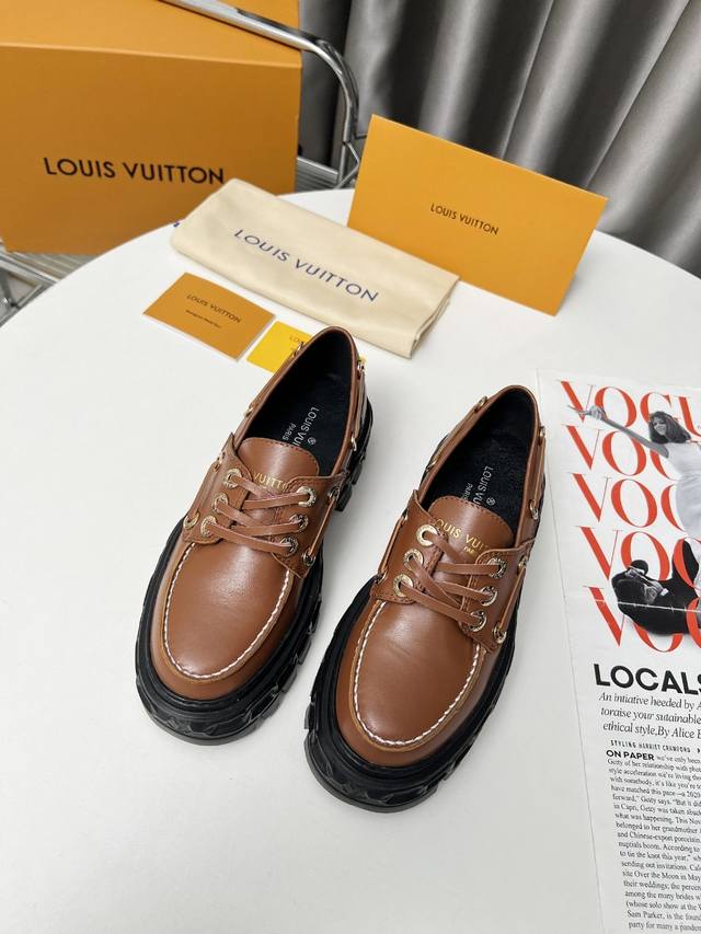拖鞋 ,单鞋 -25Ss新款loui* Vuitee*Lv乐福鞋半拖穆勒鞋本款平底乐福鞋鞋取材牛皮革...