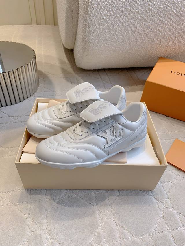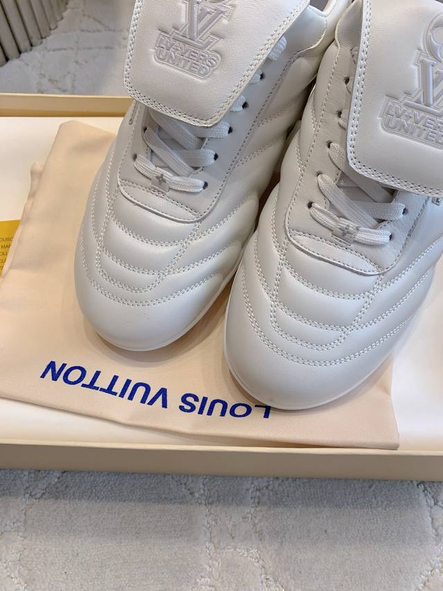 Louis Vuitt*新款足球鞋休闲鞋 整双鞋身以柔软的小牛皮为主 由Monogram花卉图案和标志构成 五指足印鞋底是亮点 留下足底的印记 时髦休闲穿搭 上脚超好看
