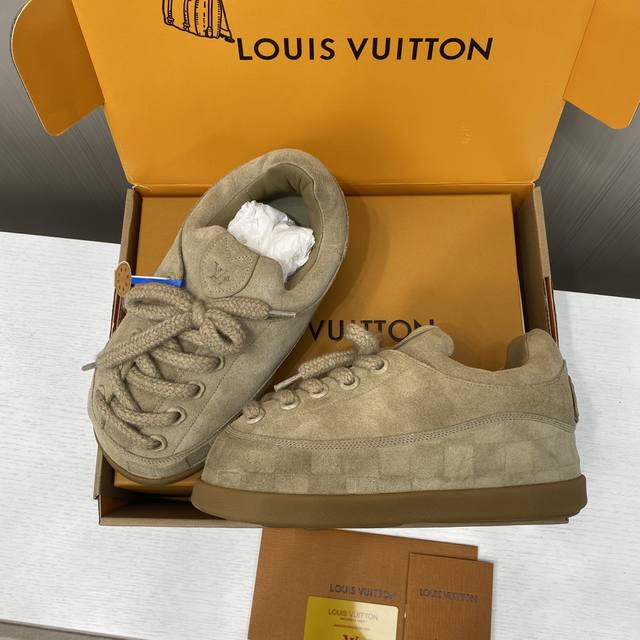 Louis Vuitton 25Ss ,Lv联名Nigo Yeti 胖丁 丑萌,众多网红明星纷纷开秀上脚 , 经典百搭的单品 面料:进口牛反绒。内里:高级弹力网布,原版开模大底。码数:女装,35-41 女41定做 ,男装39-46 45-46定做