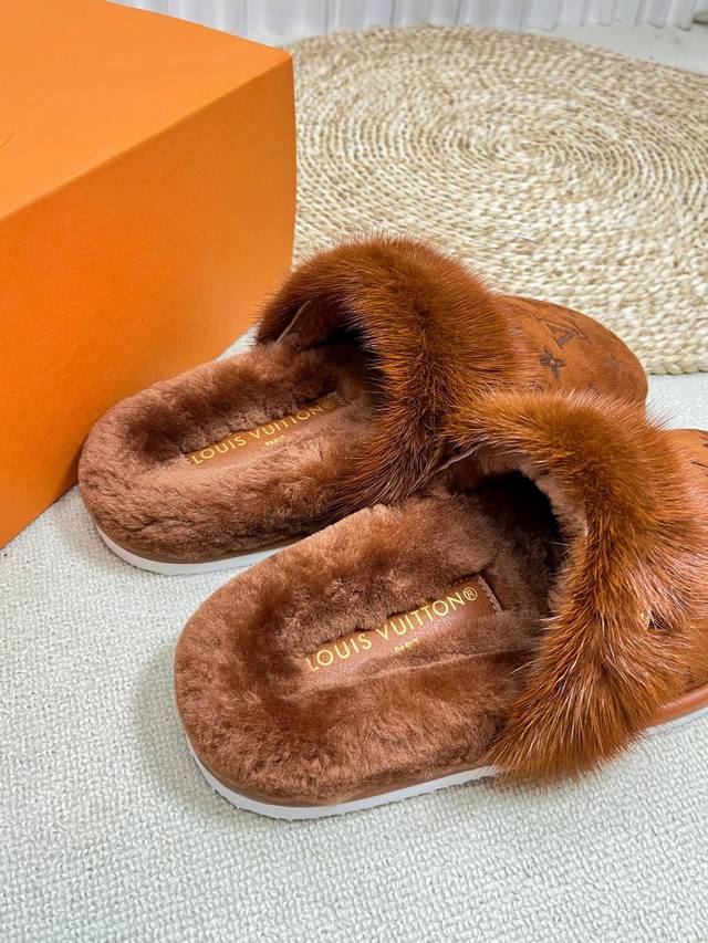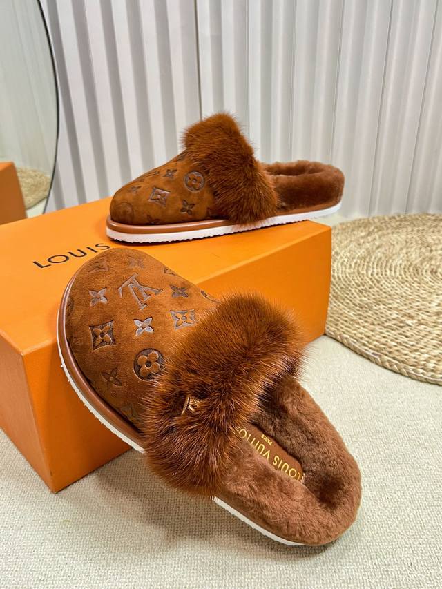 Lv 2024秋冬新款|平底毛拖鞋
