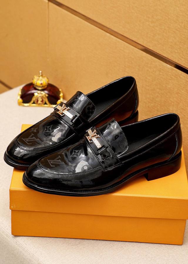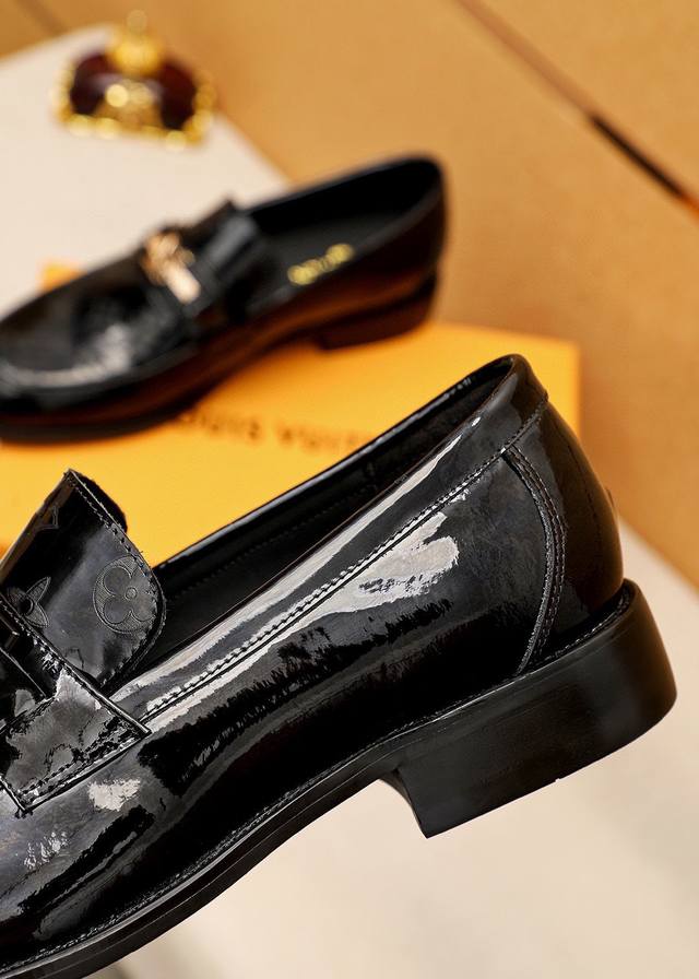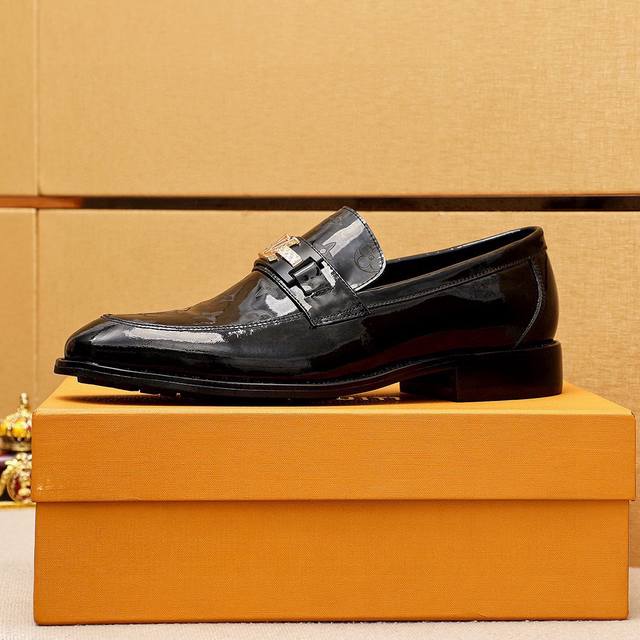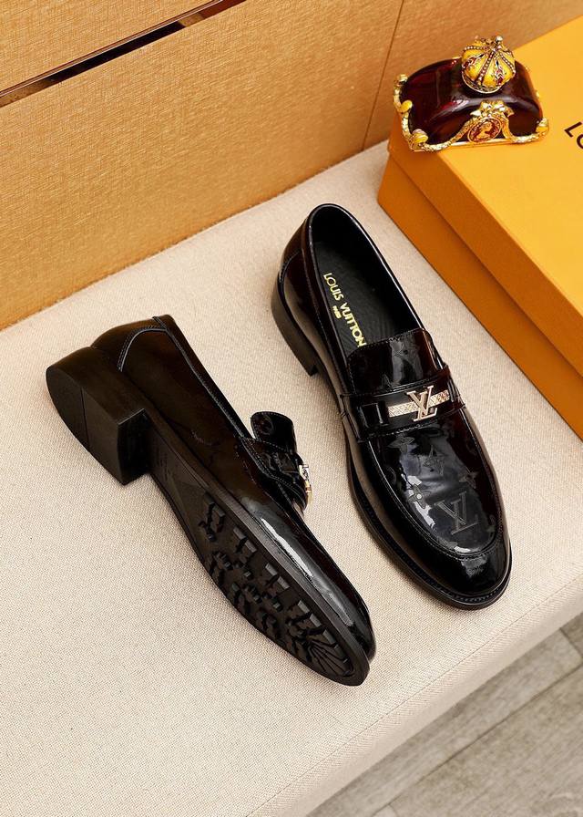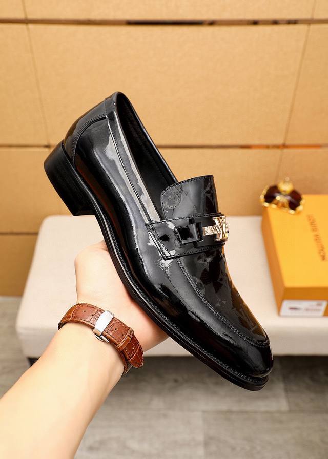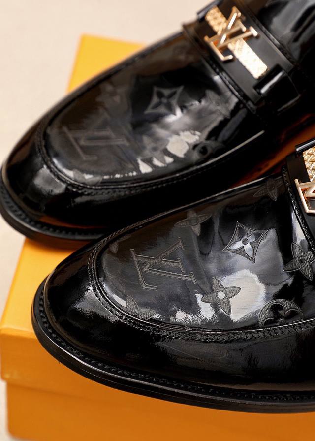 / 商品商标:Louis Vuitton 路易威登 休闲皮鞋 正码码数: 38-44 45.46订制 商品材料:精选 进口头层漆皮鞋面+奢华五金扣,进口头层牛皮内里