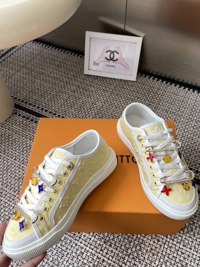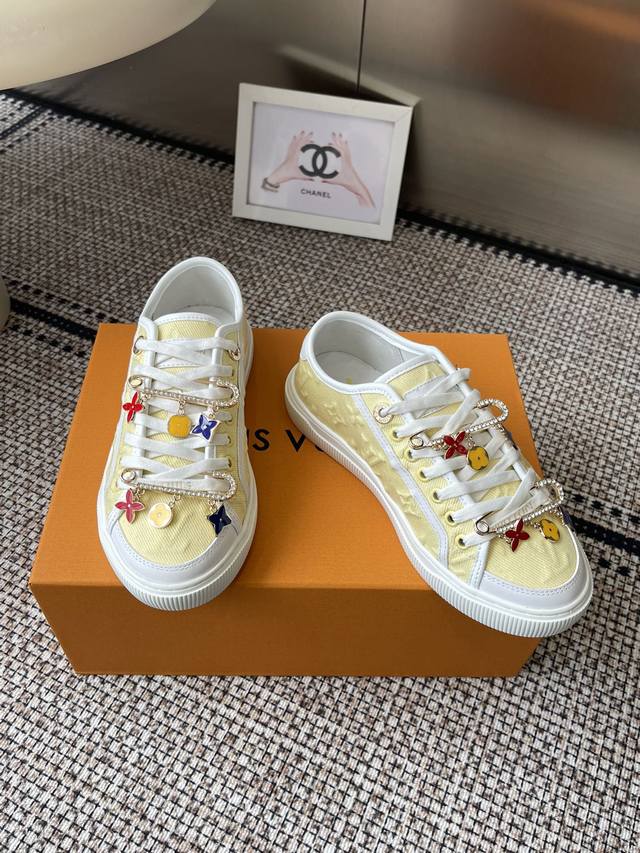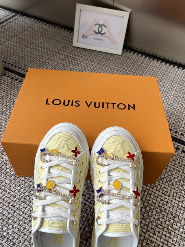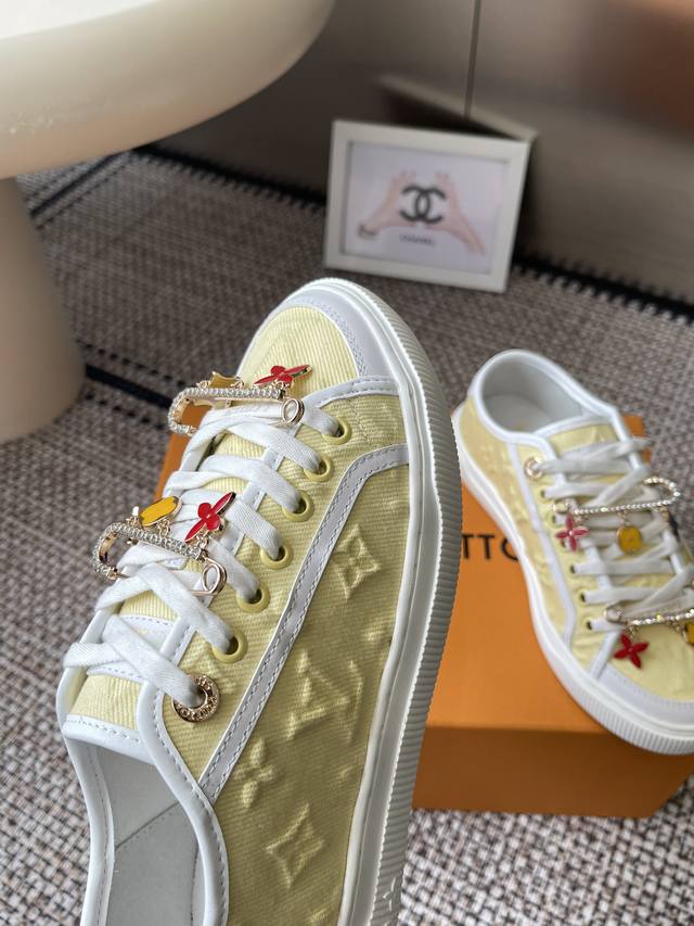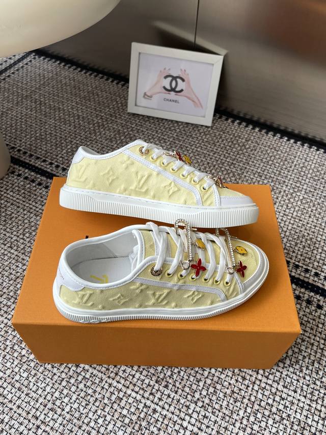 / 女款配色 装饰20 Louis Vuiton路易威登 25Ss新款 Lv Lagoon系列丹宁牛仔布压花老花帆布鞋滑板鞋休闲运动鞋 原版购入开发做货 整双鞋子采
