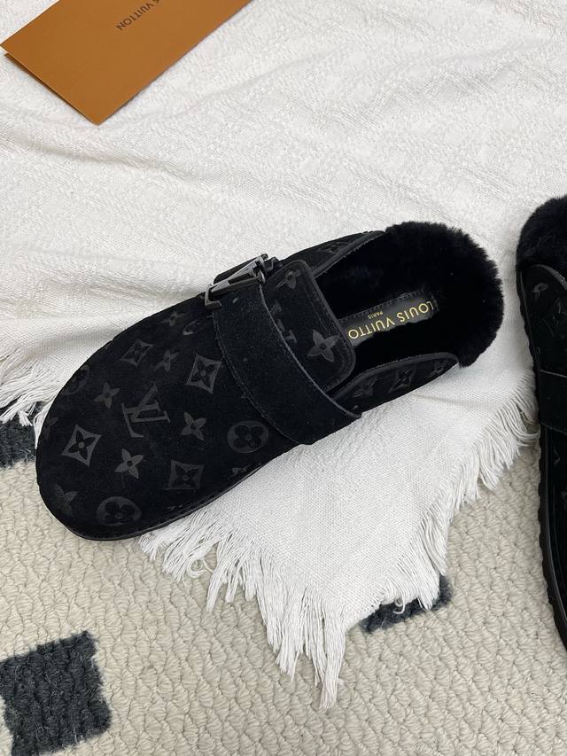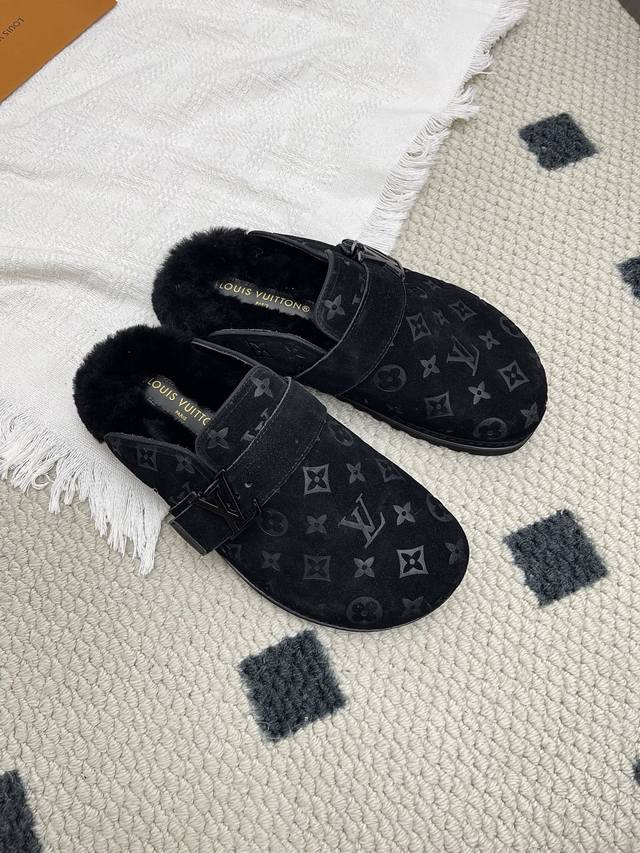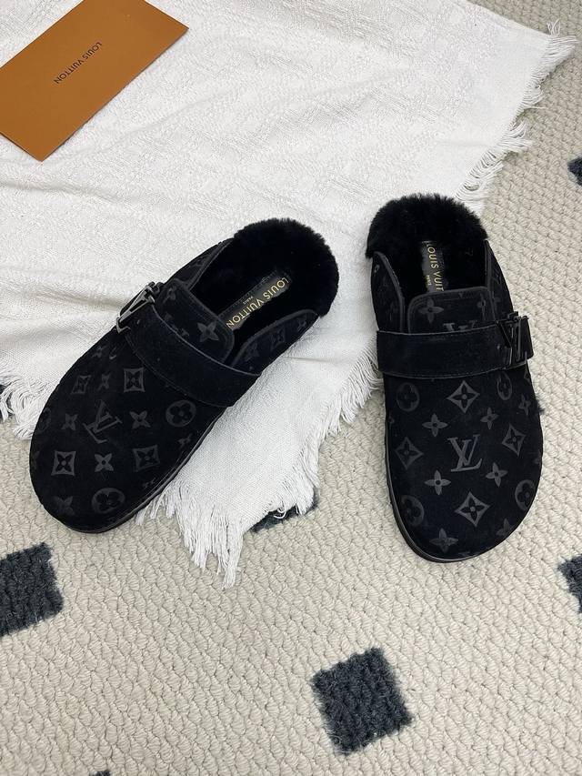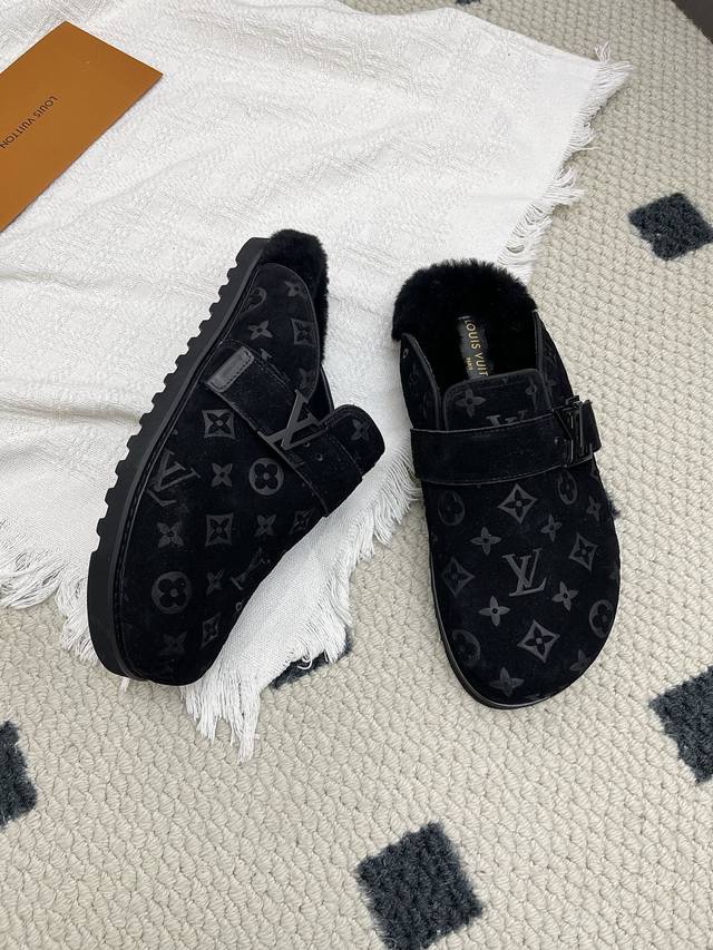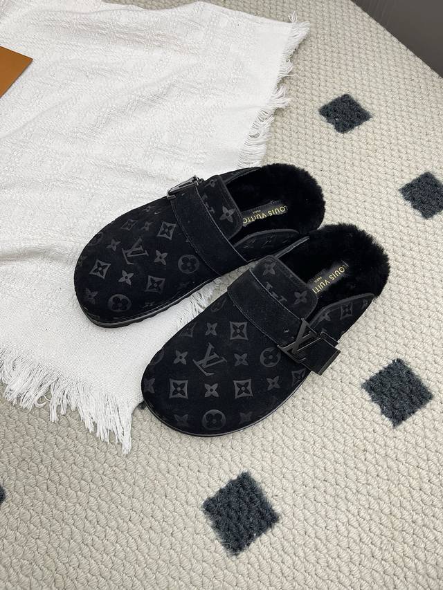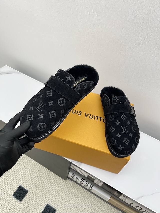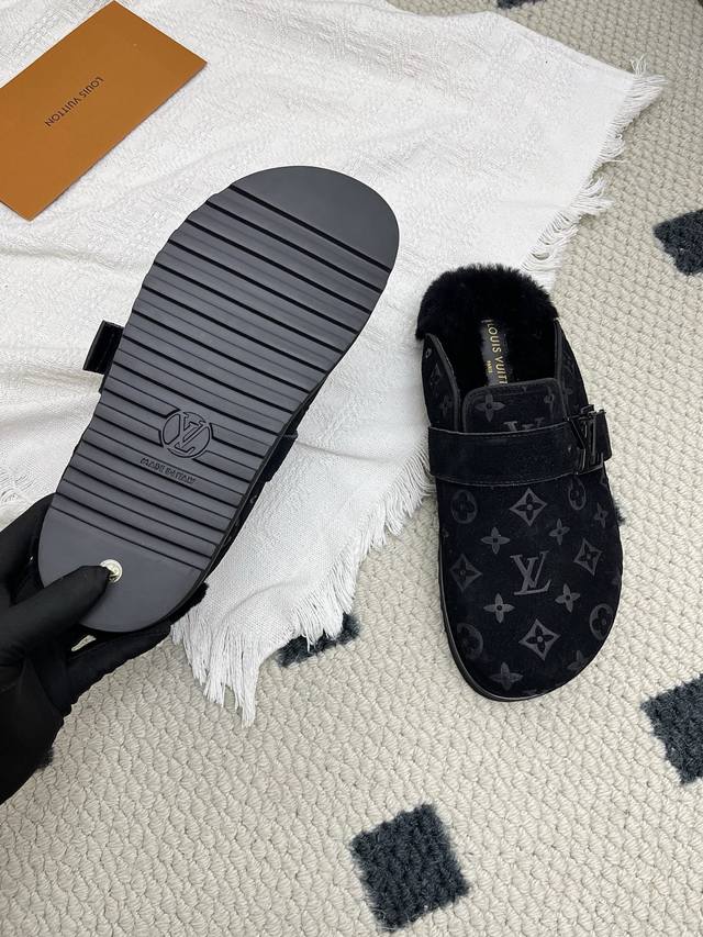 女款 男款 Lv路易威登L家 驴牌 最新Easy系列 勃肯 包头 厚底 毛拖鞋