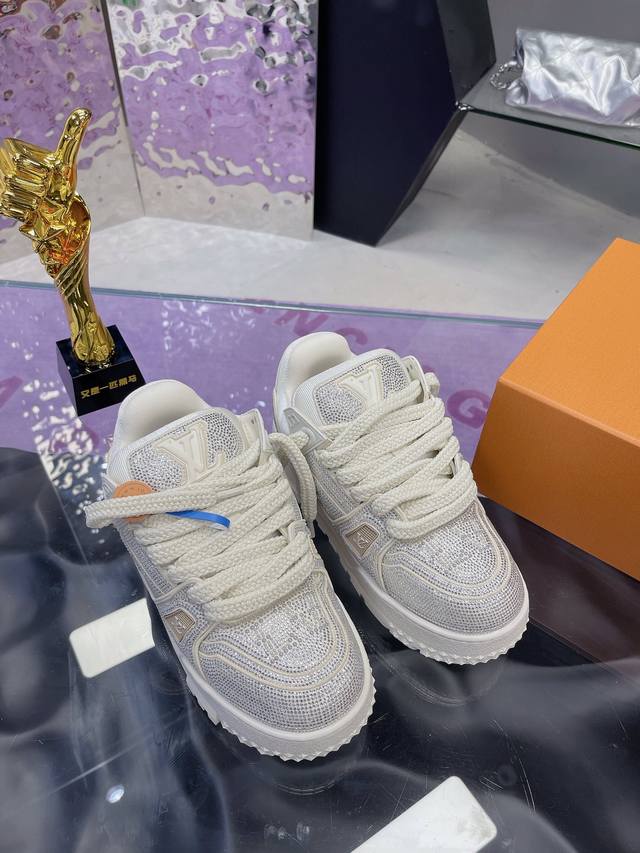 工厂价:Lv 胖丁 钻面 Trainer情侣满钻限量bulingbuling小胖丁系列独家高品质!配色太显高级啦!无论在自然光抑或在夜光灯下同样光芒四射流光溢彩