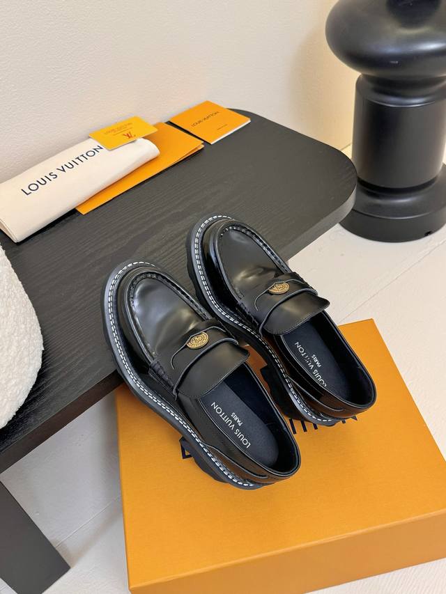 Loui* Vuitto* L驴牌2024年新款 链条浮雕设计风厚底乐福鞋