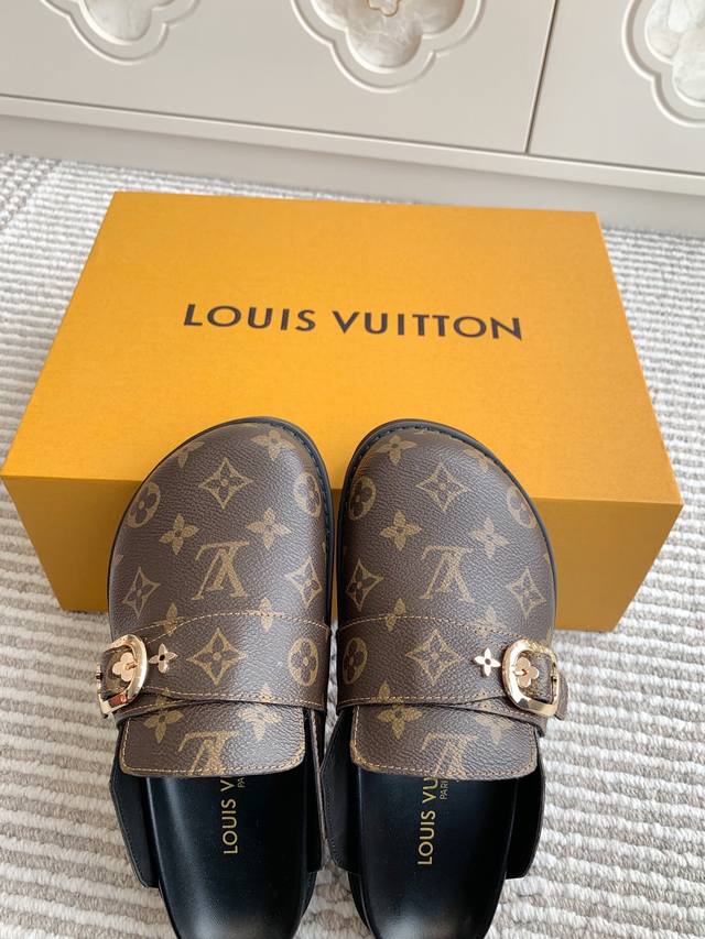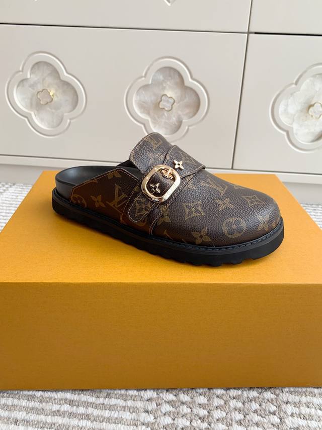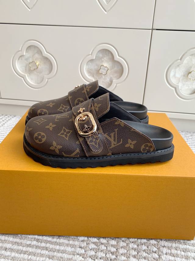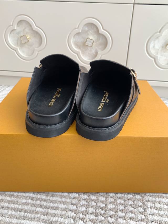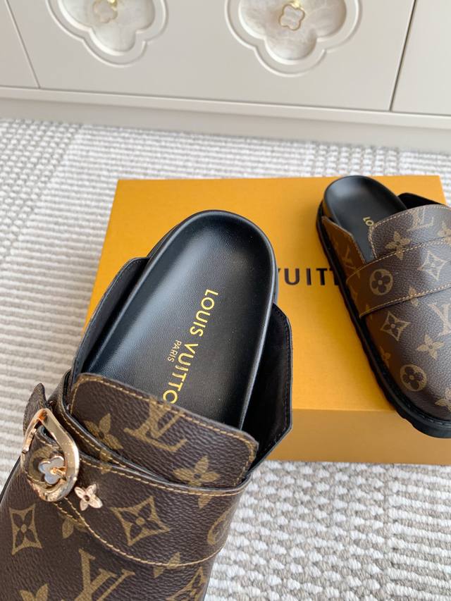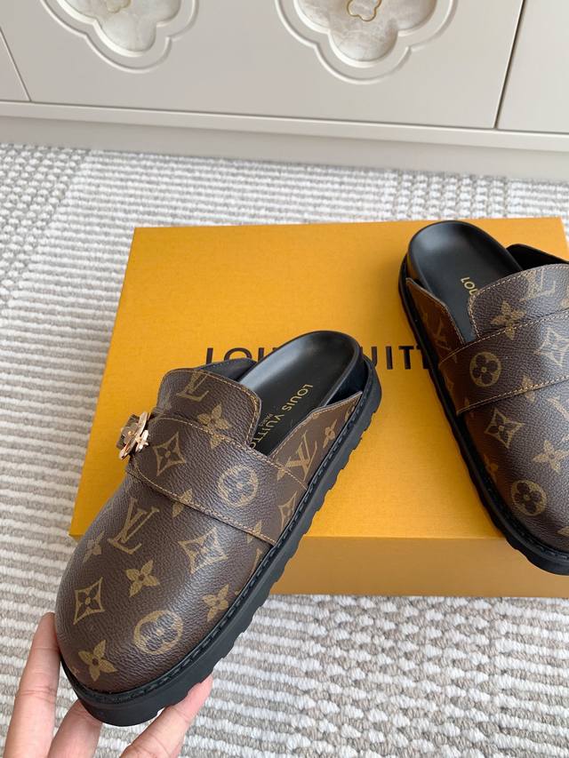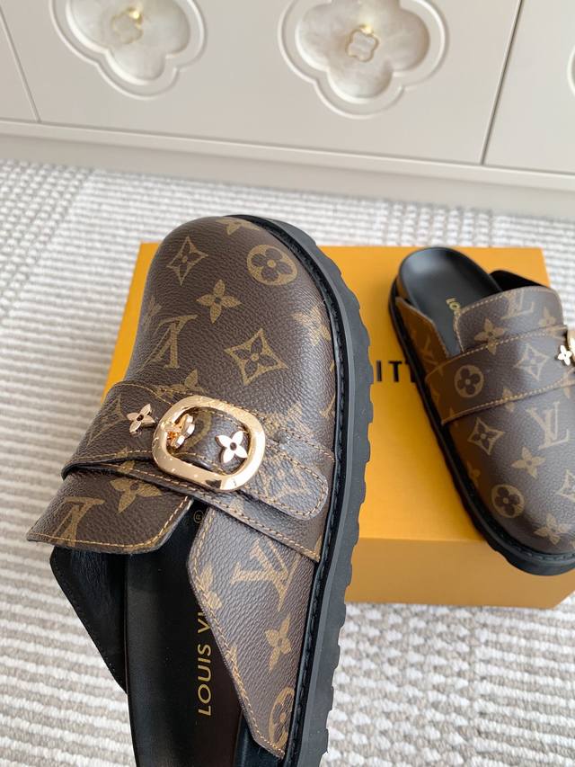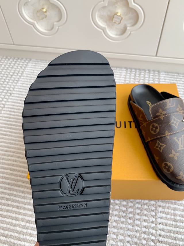 本款 Lv Cosy Comfort 平底凉拖取材光滑牛皮革,在潮流之中流露闲适惬意。可调节饰带点缀 Monogram 花卉和 Lv Twist 标识饰钉,轻盈微型外底完善整体。
