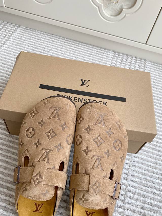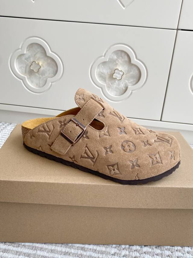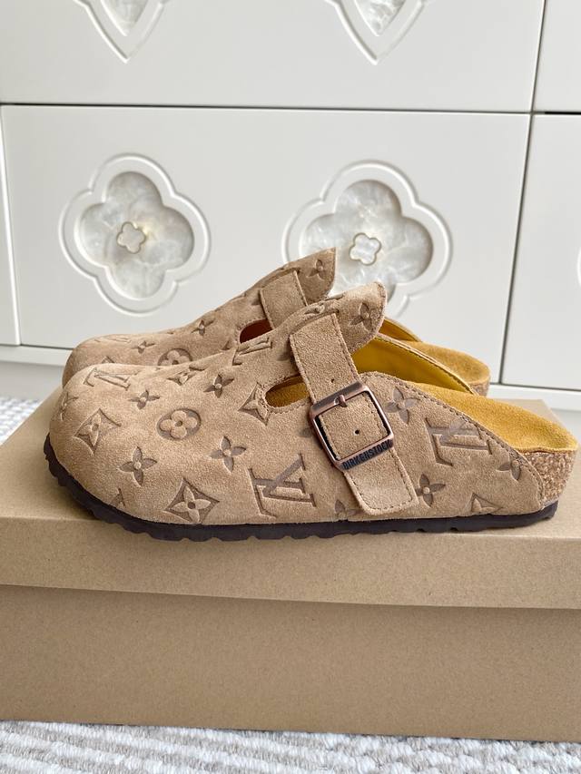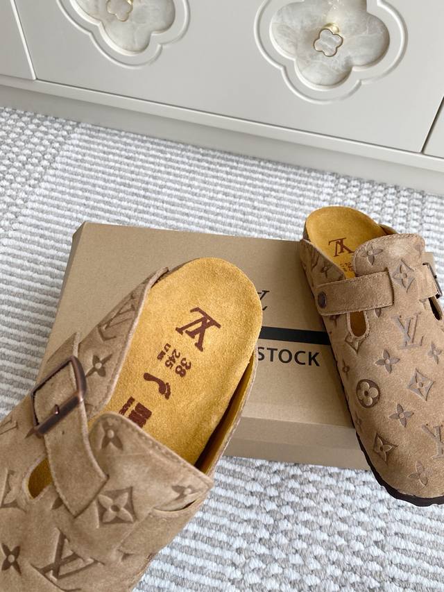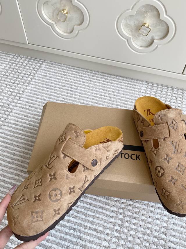 L驴家情侣款老花勃肯鞋 穆勒包头拖鞋