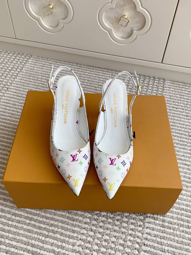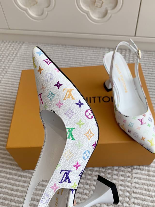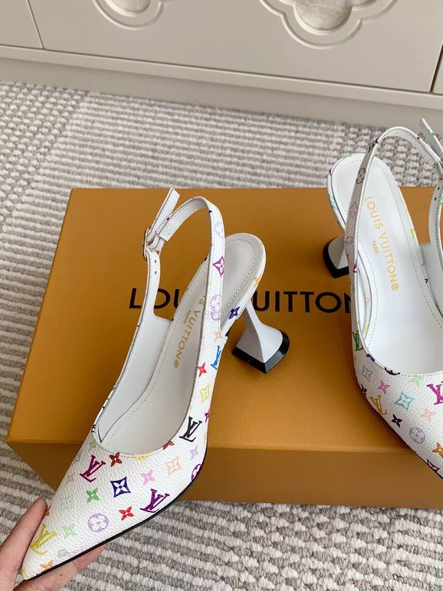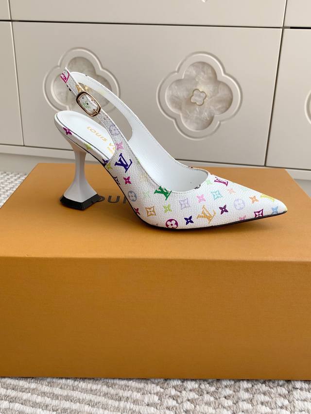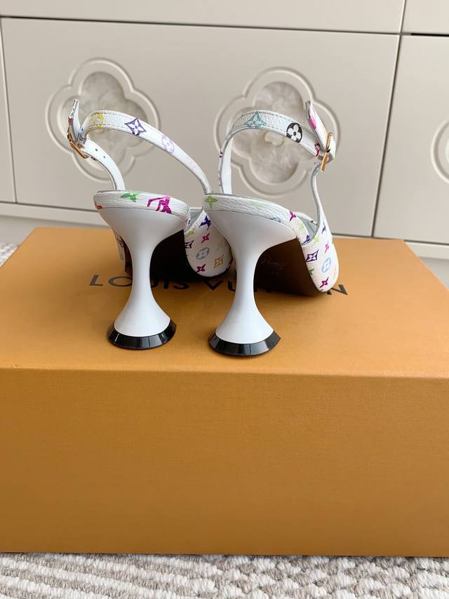 l&V驴家 新品村上隆·黑白三彩酒杯跟尖头后空凉鞋