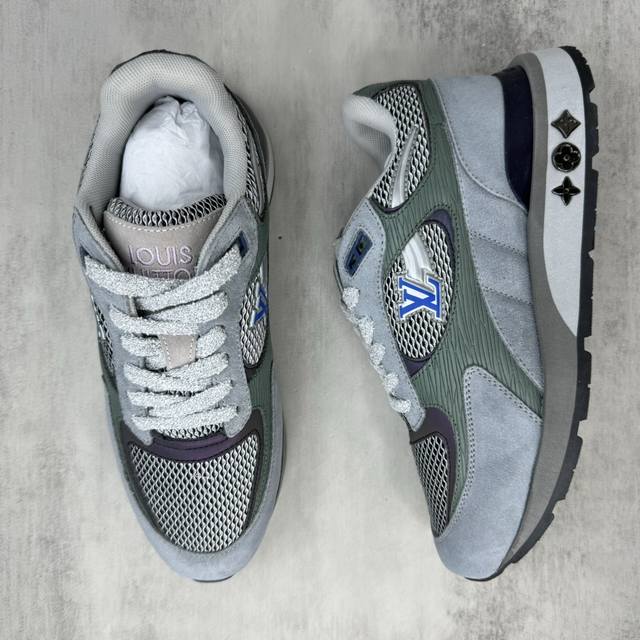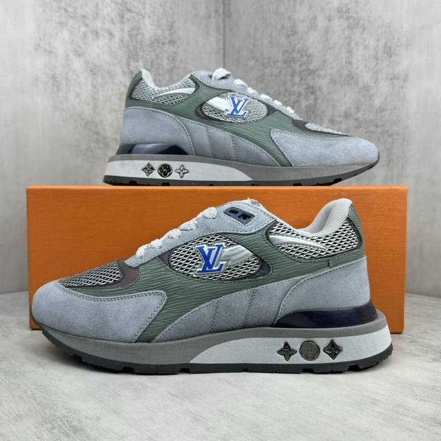 新款上架 Lv家 Run Away 运动鞋拼接 Epi 牛皮革和 Monogram 压纹粒面牛皮革,再现传统跑鞋的灵感启发 楔形外底延续标志性设计,品牌字母和标