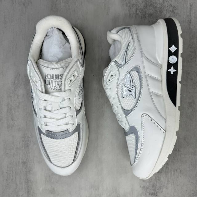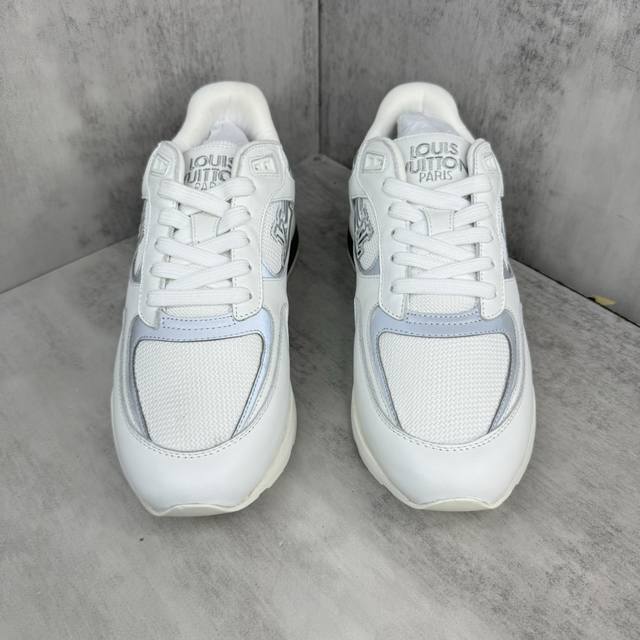 新款上架 Lv家 Run Away 运动鞋拼接 Epi 牛皮革和 Monogram 压纹粒面牛皮革,再现传统跑鞋的灵感启发 楔形外底延续标志性设计,品牌字母和标