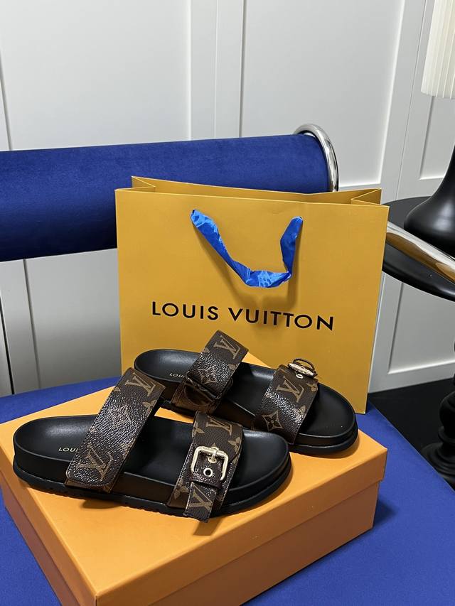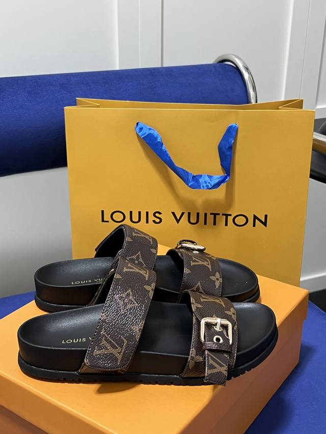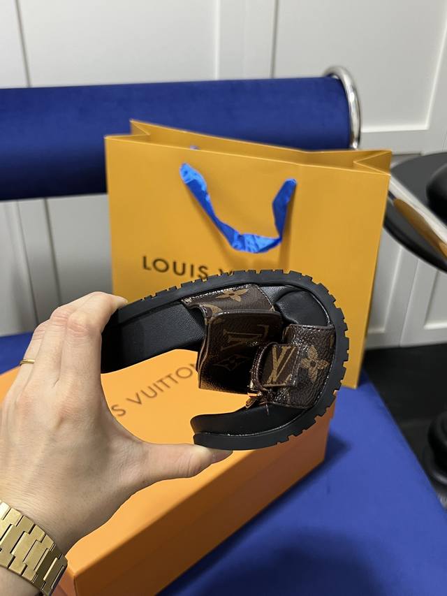 橙子出厂价 Louis Vuitton 路易威登 Lv 二带魔术贴厚底拖鞋 休闲凉拖 凉鞋 情侣款 码数:35-45