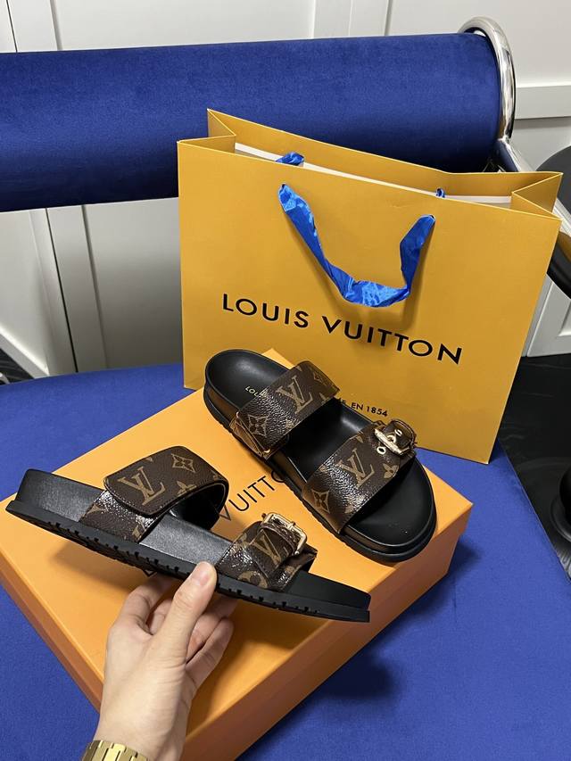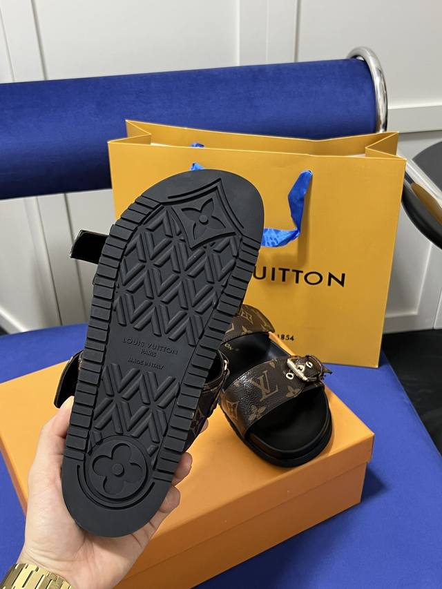 Louis Vuitton 路易威登 Lv 二带魔术贴厚底拖鞋 休闲凉拖 凉鞋 情侣款