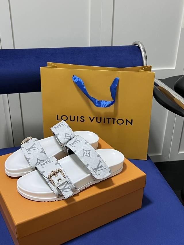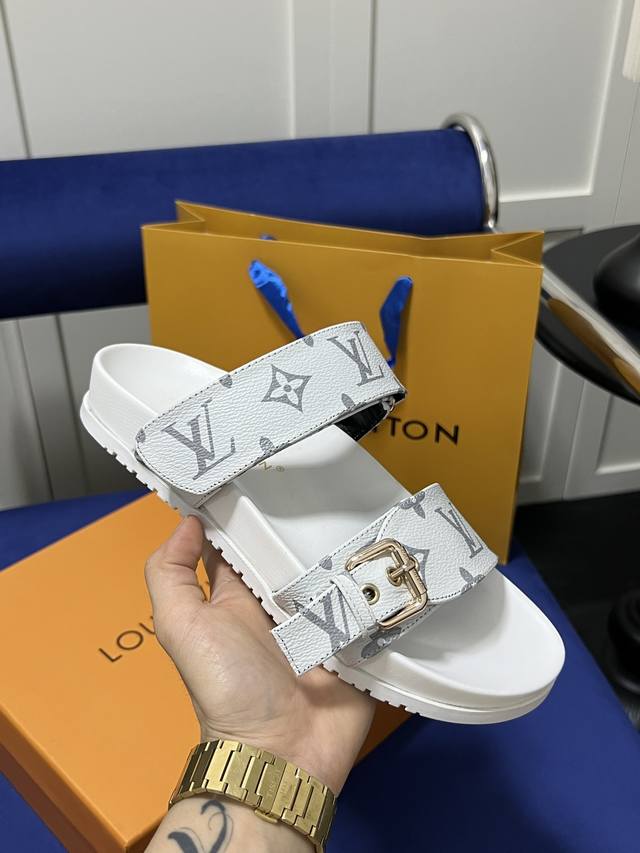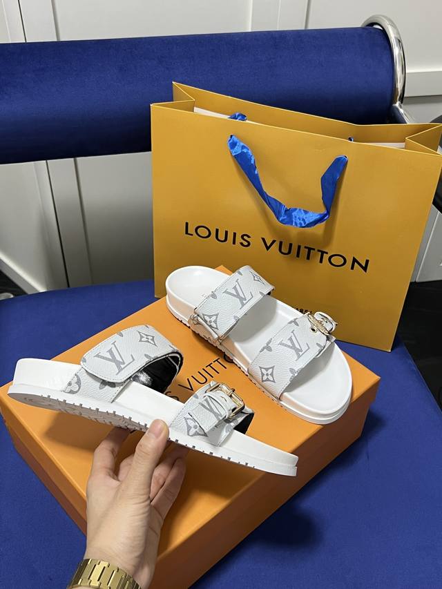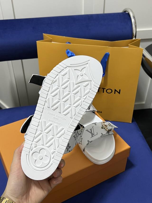 Louis Vuitton 路易威登 Lv 二带魔术贴厚底拖鞋 休闲凉拖 凉鞋 情侣款