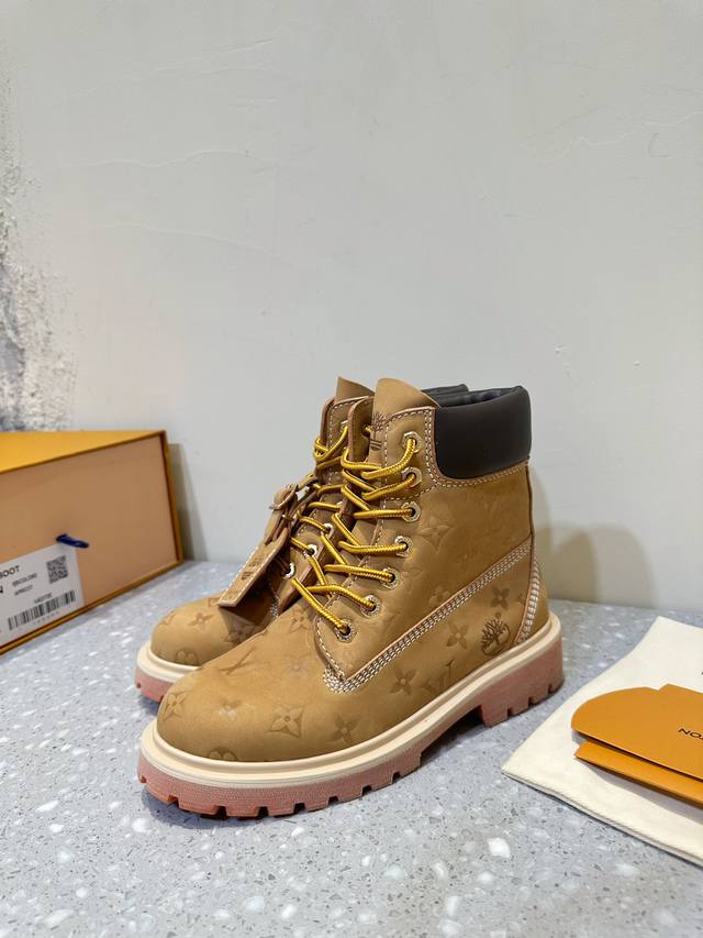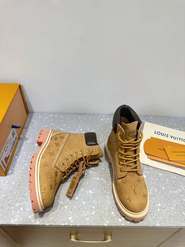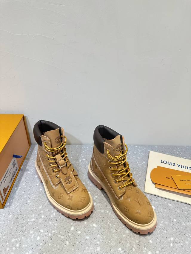 男码+10 Lv X Timberland 添柏岚 联名款 老花 大黄靴 及踝靴 短靴