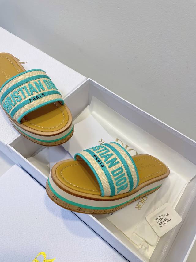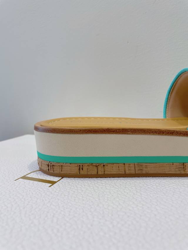 刺绣面软木底厚底拖鞋,完美拉长腿部线条,增高效果无敌!