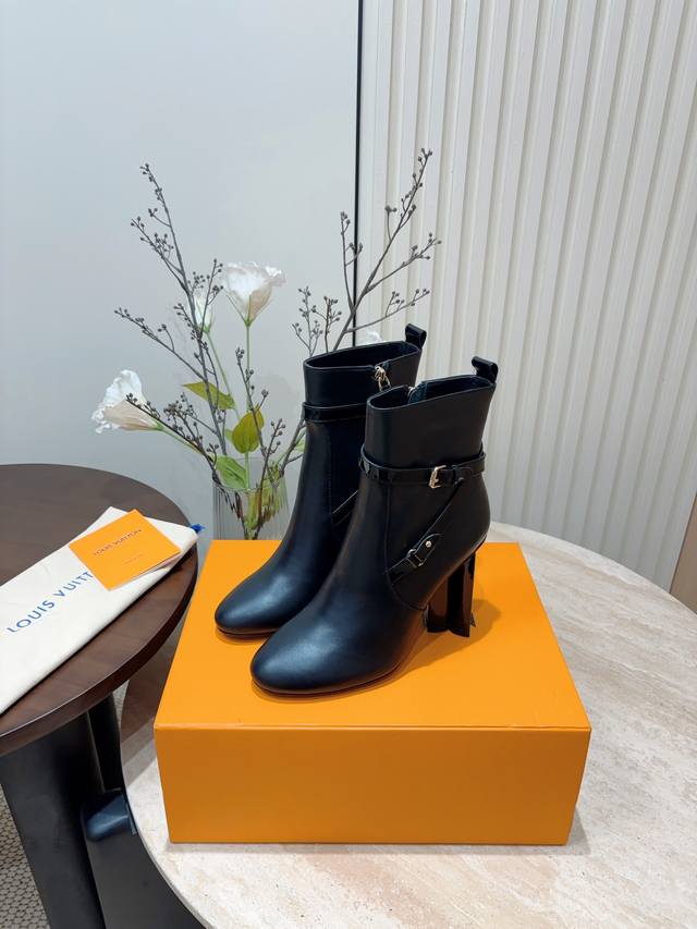 秋冬新款louis Vuitton Lv Silhouette梅花高跟短靴