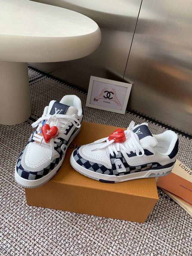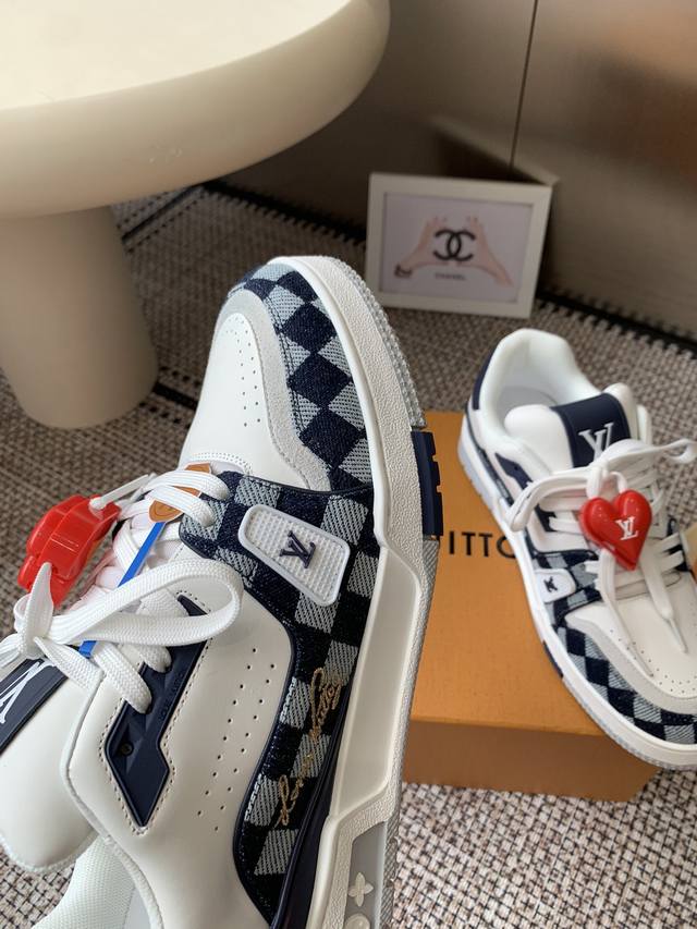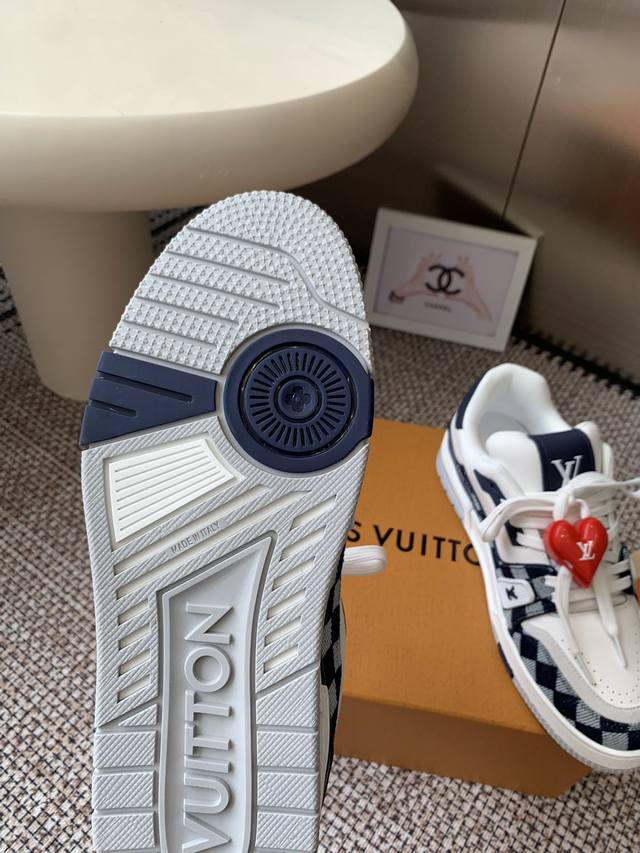 原版购入开发 做货 本款Lv Trainer 运动鞋选用牛皮革塑造繁复鞋面,需要数小时的匠心缝制方可完成。经典构型出自 Virgil Abloh 之手,展现复古篮球鞋的灵感启发