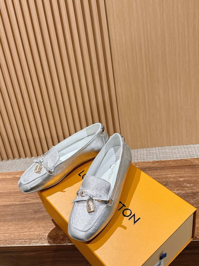路易威登平底乐福鞋 豆豆鞋,采用优质牛皮 轻盈舒适的莫卡辛结构搭配手缝鞋面 点缀Lv Cicle标识和铭纹鞋带端头。饰蝴蝶 版型设计奢华大气 完美诠释品牌奢华风