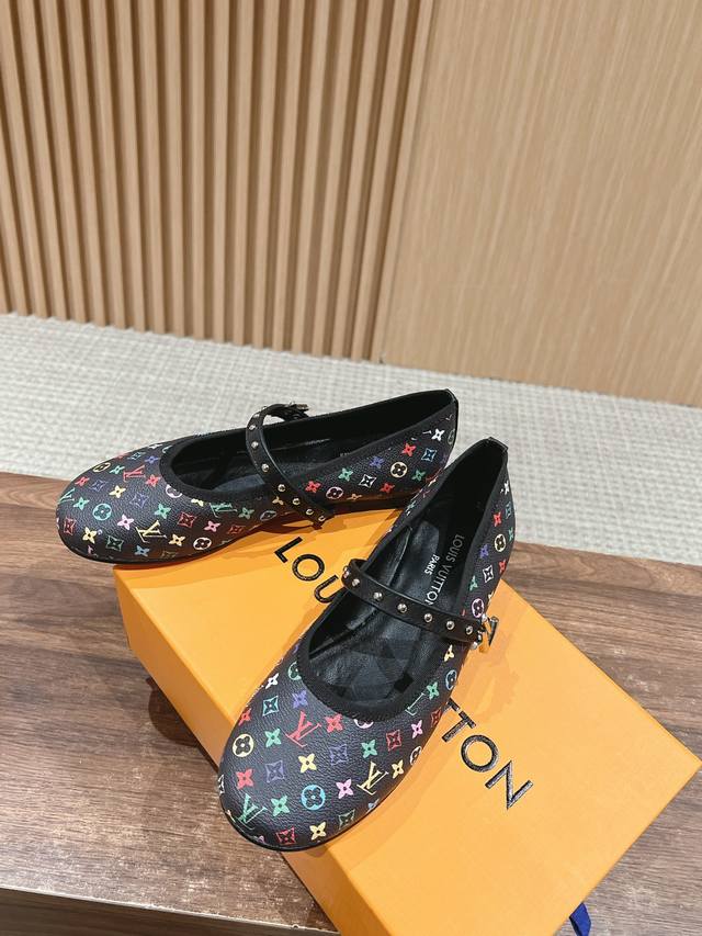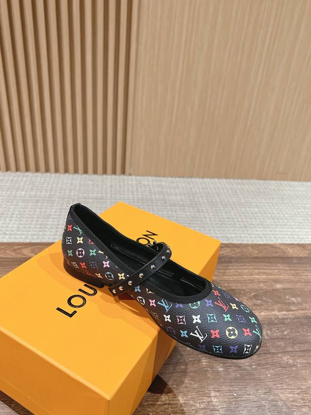 路易威登新款老花芭蕾舞鞋平底鞋 牛皮3D打印 金属logo搭扣 羊皮里 真皮大底 Size:35-39 40 41定做不退换