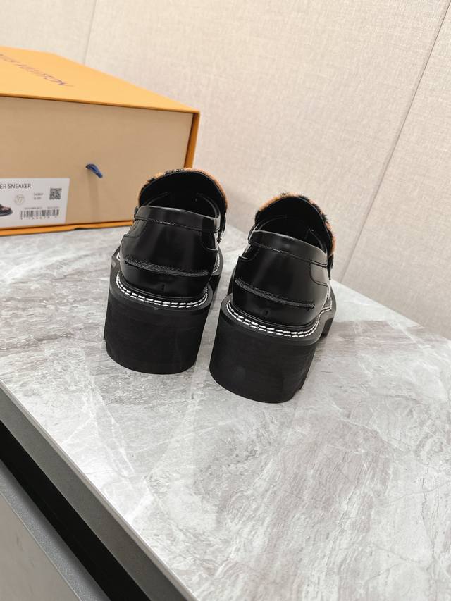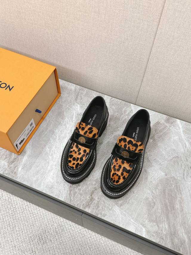 路易威登 Lv 专柜同步系列新款厚底情侣款皮鞋潮气逼人 尽显青春活力,日常穿搭超级抢眼,经典的拱形设计,一向被称之为美腿神器!绝对的人手必备 真羊毛里
