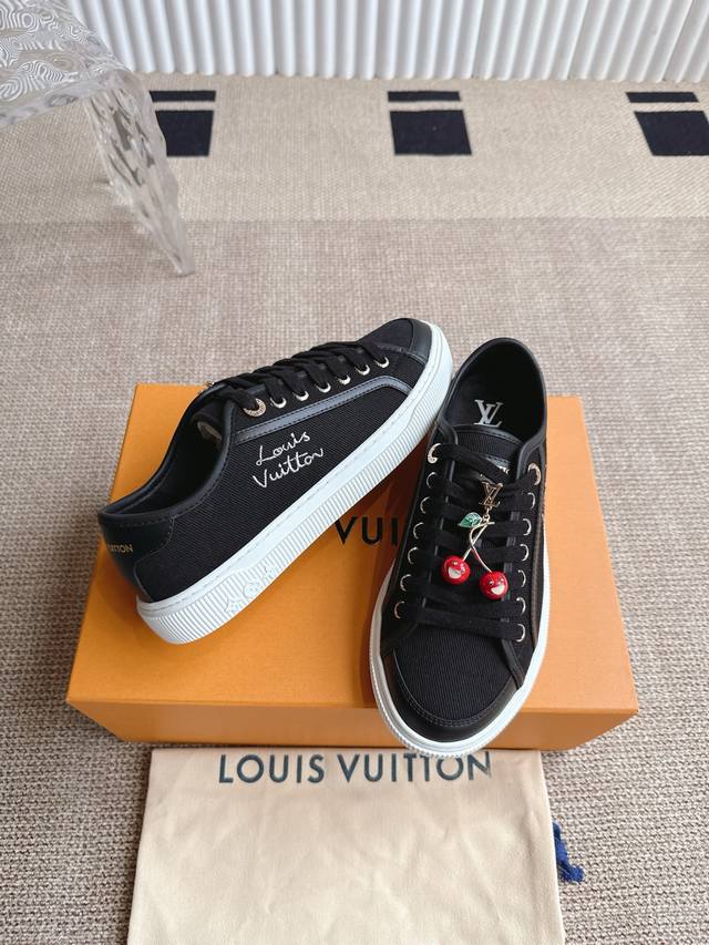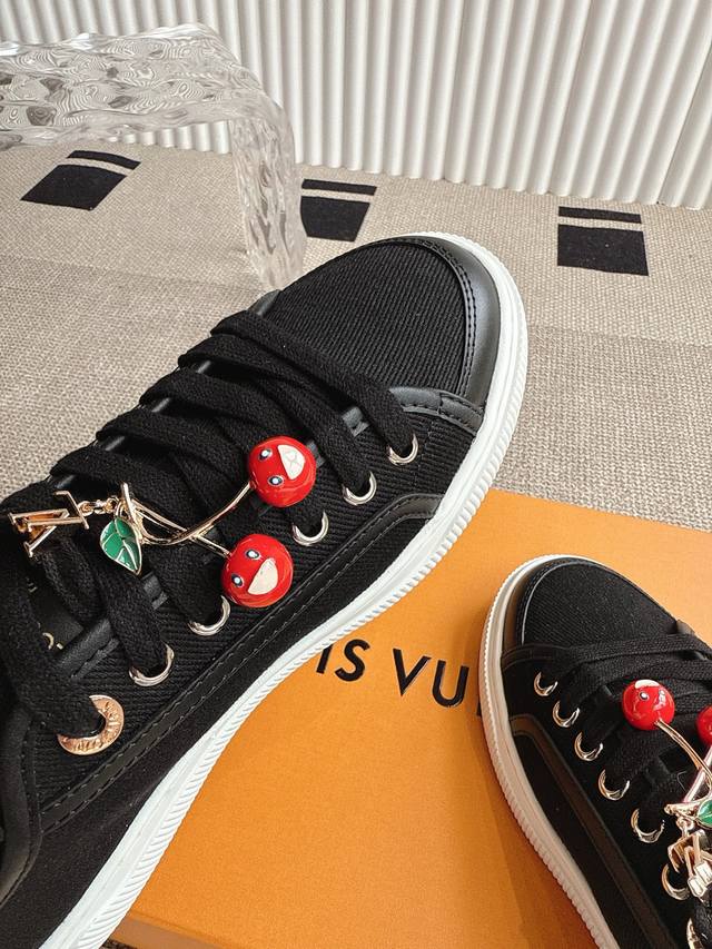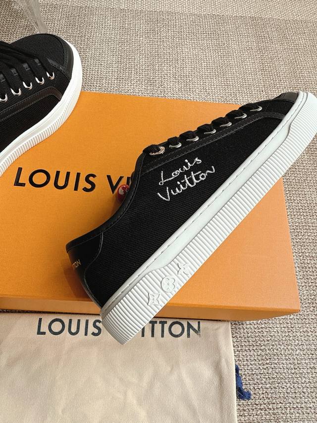 Lv Lagoon 运动鞋取材 Monogram 丹宁布,为经典设计注入复古气息。皮革饰边跃现路易威登标识,铭纹孔眼、镶边和鞋带彰显考究细节,点缀 Monogram 花卉的橡胶外底完善整体。