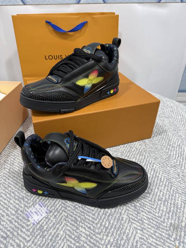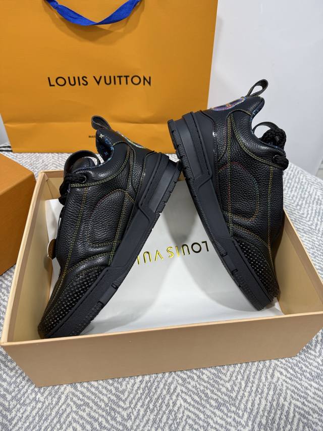 鞋面由意大利进口小牛皮拼接,侧边饰有品牌Logo标志及签名,进口了透气网布内里,脚感超舒适。原厂特供原版双色Tpu吸模大底。套包工艺 固特异缝合锁边