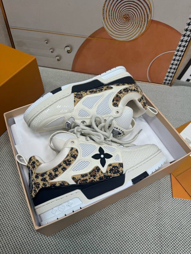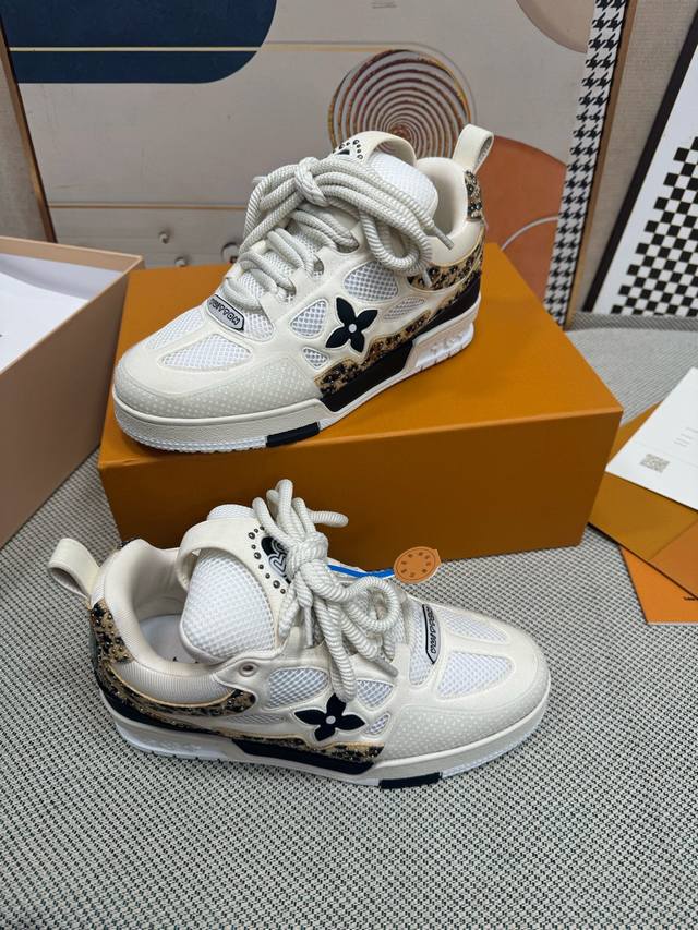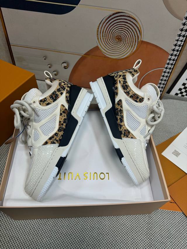 鞋面由意大利进口小牛皮拼接,侧边饰有品牌Logo标志及签名,进口了透气网布内里,脚感超舒适。原厂特供原版双色Tpu吸模大底。套包工艺 固特异缝合锁边