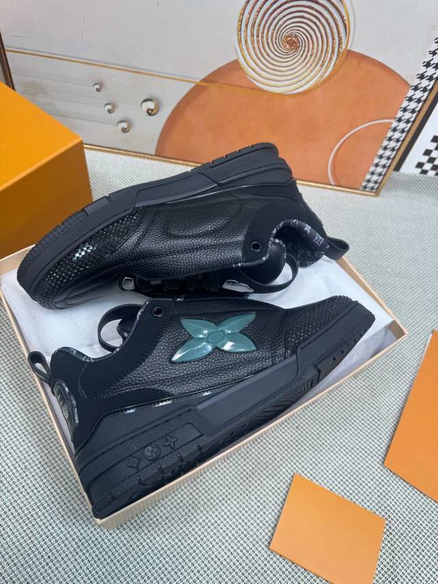 鞋面由意大利进口小牛皮拼接,侧边饰有品牌Logo标志及签名,进口了透气网布内里,脚感超舒适。原厂特供原版双色Tpu吸模大底。套包工艺 固特异缝合锁边