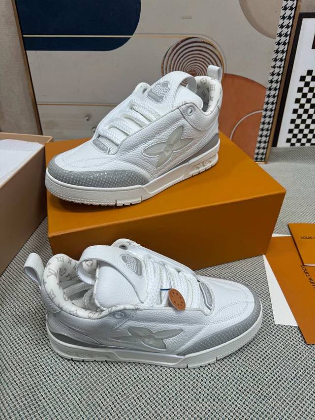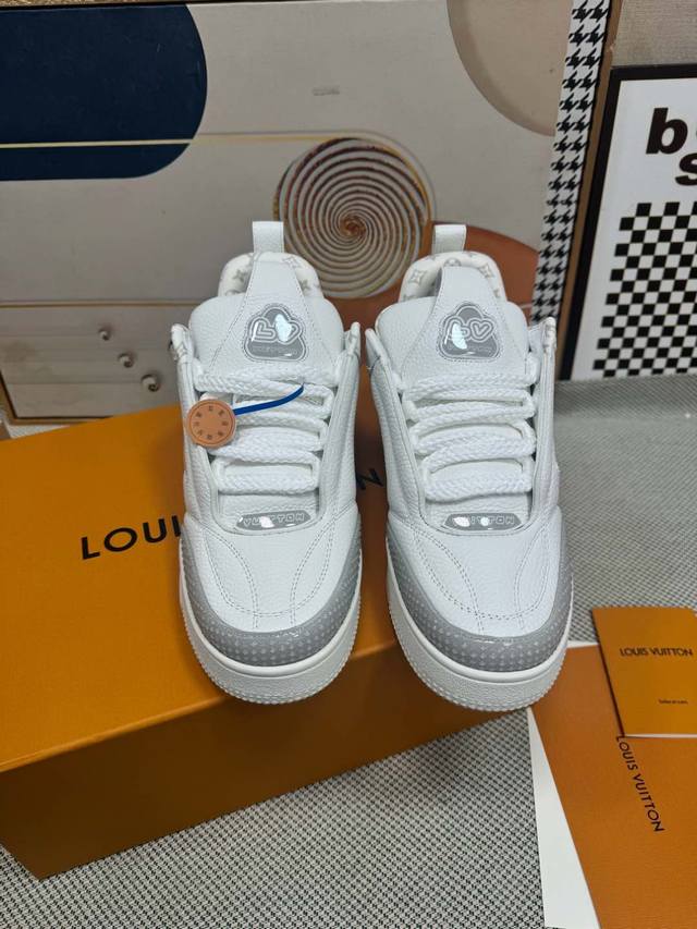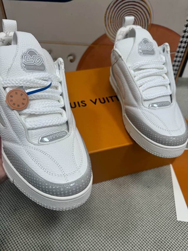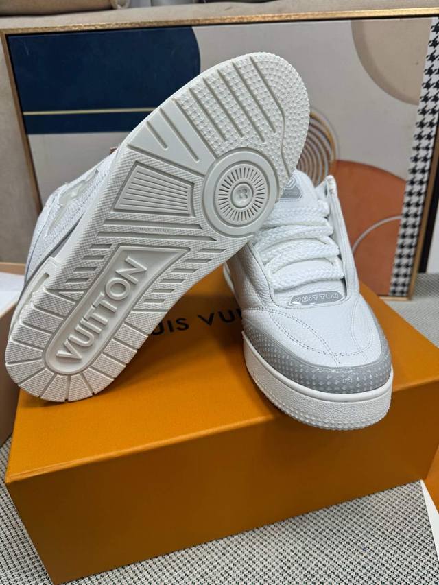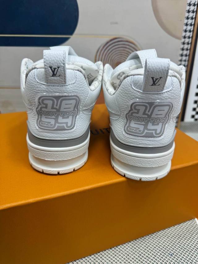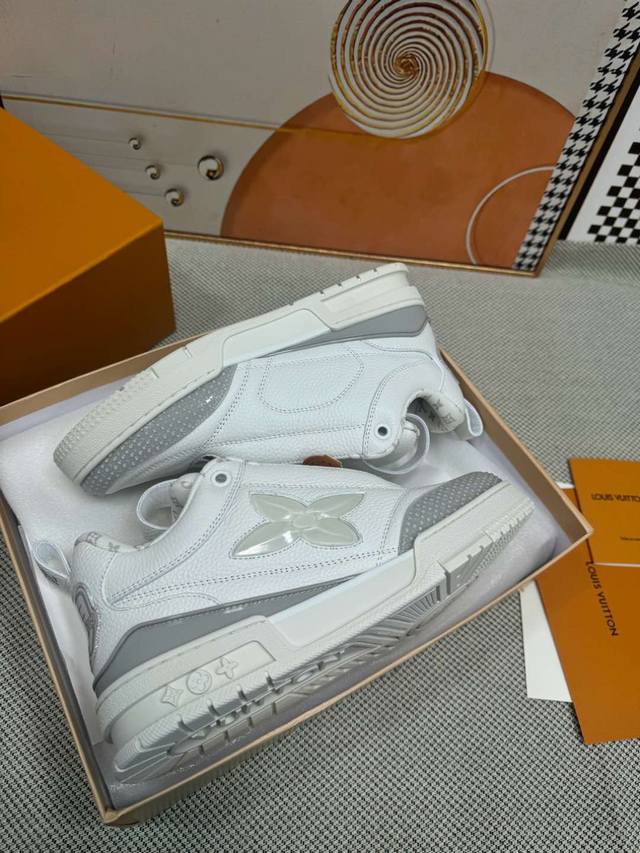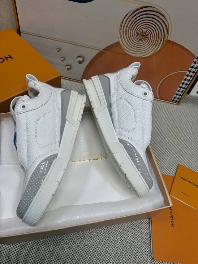 鞋面由意大利进口小牛皮拼接,侧边饰有品牌Logo标志及签名,进口了透气网布内里,脚感超舒适。原厂特供原版双色Tpu吸模大底。套包工艺 固特异缝合锁边