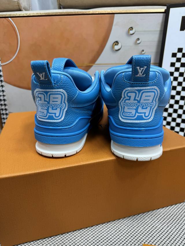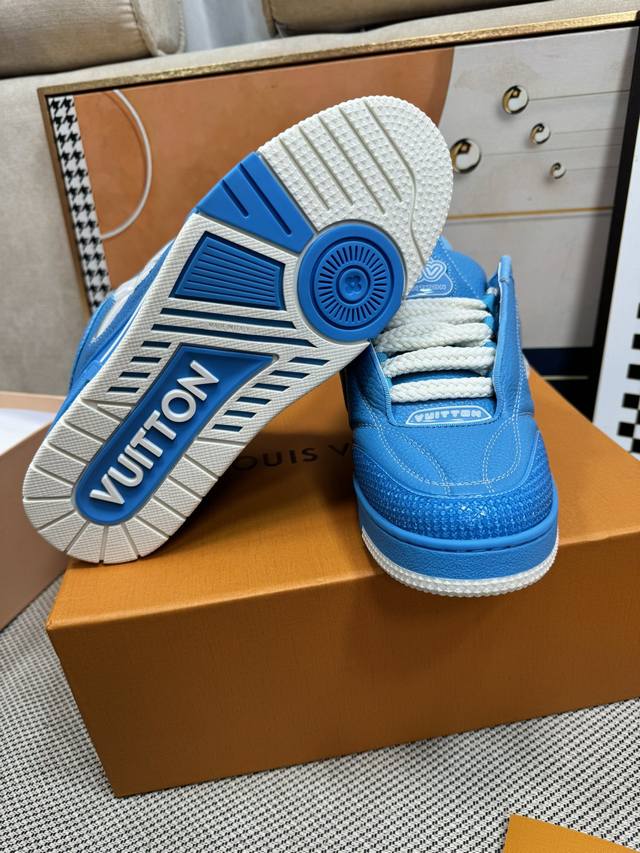 面包鞋 顶级级版本 Lv-路易-威登 pk市场一切版本 情侣款 走秀新款 篮球板鞋 代购品质 原版1:1开发复刻!!上脚非常舒适 做工精细 鞋面由意大利进口小牛皮拼接,侧边饰有品牌Logo标志及签名,进口了透气网布内里,脚感超舒适。原厂特供原版双色Tpu吸模大底。套包工艺 固特异缝合锁边