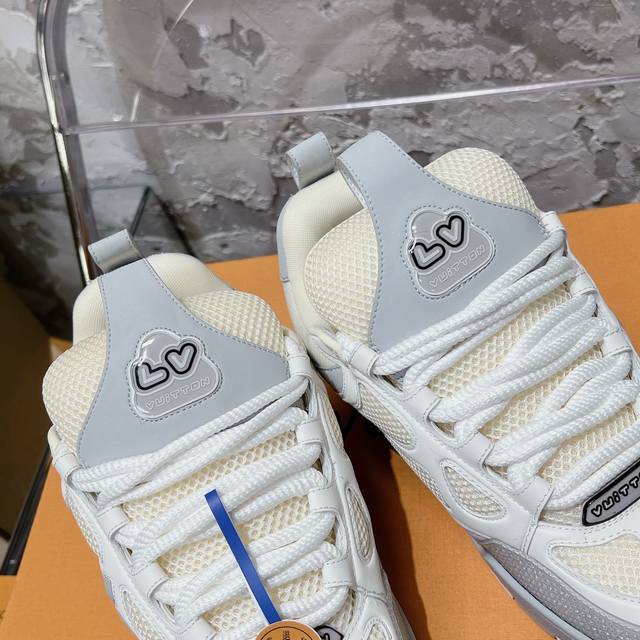 Lv Skate运动鞋于秋冬男装秀场展现1990年代胖胖呼呼的格调经典回潮。科技网格面料和牛皮革共筑繁复鞋面,密集度超高 区别于同行色泽质感 意大利进口头层一刀切小牛皮 皮料厚实度韧性高于市面。栖身其上的 Monogram花卉在橡胶外底亦有呈现,原版垫脚聚米微料加透气英伦网布 都是按正品一比一打造开发,1:1定制粗纹鞋带;原版私模tpu大底。品质直指巅峰 多双原版拆解炮制 男女版面细节区分