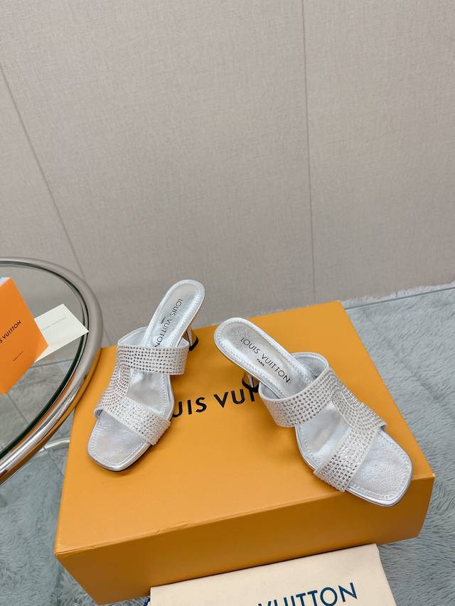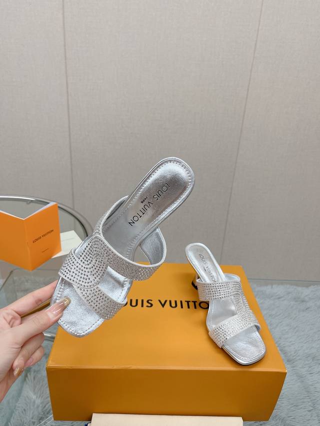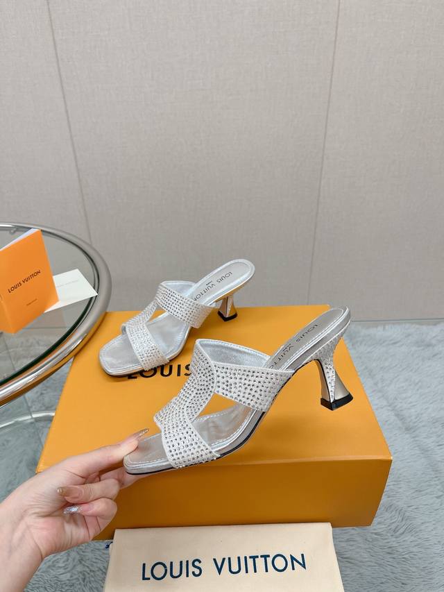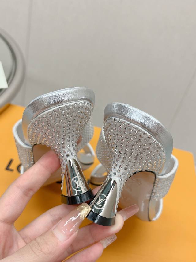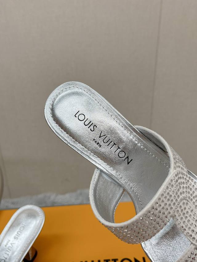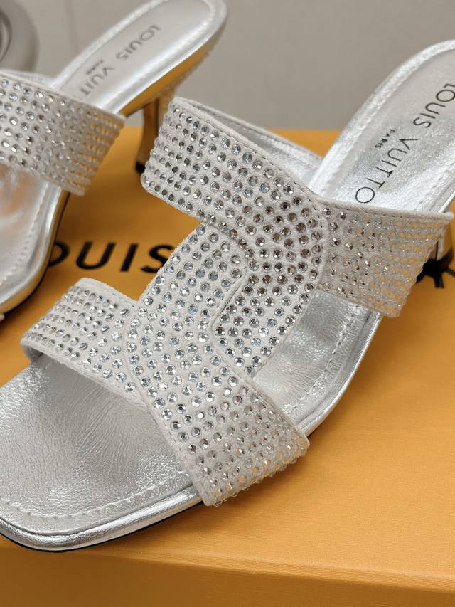 Loui* Vuitte** 新款高跟互锁钻面拖鞋
